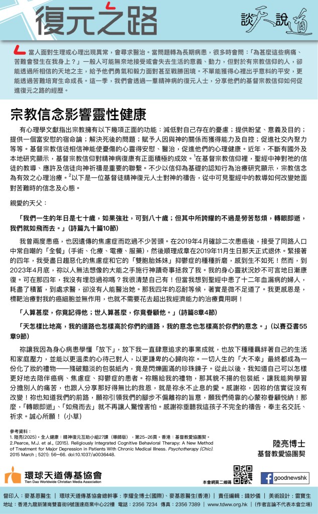 +/- logotherapy (link with Christian faith) (by Dr. KY Mak)
