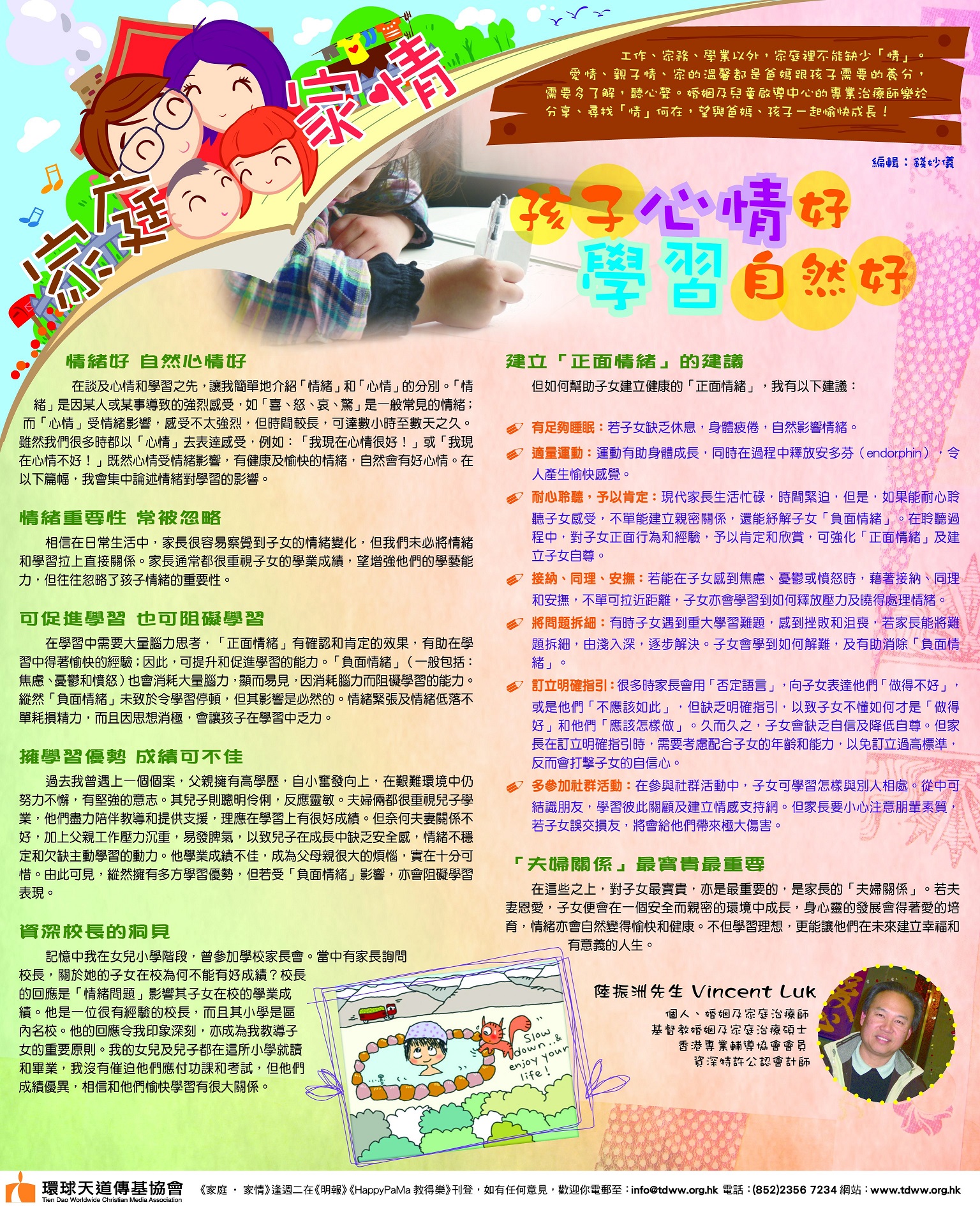 《家庭‧家情》逢週二在《明報》教得樂刊登,本期為2015年5月12日,歡迎奉獻支持經費。