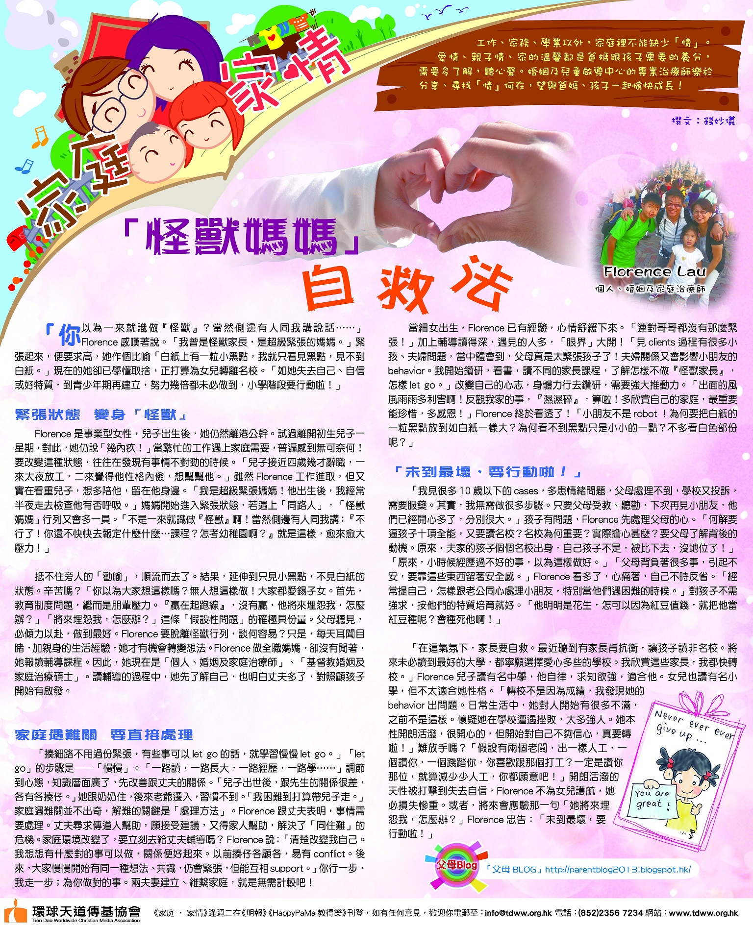 《家庭‧家情》逢週二在《明報》教得樂刊登,本期為2015年7月28日,歡迎奉獻支持經費。