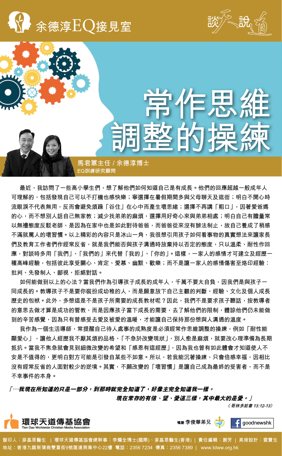 余德淳「EQ接見室」之常作思維調整的操練