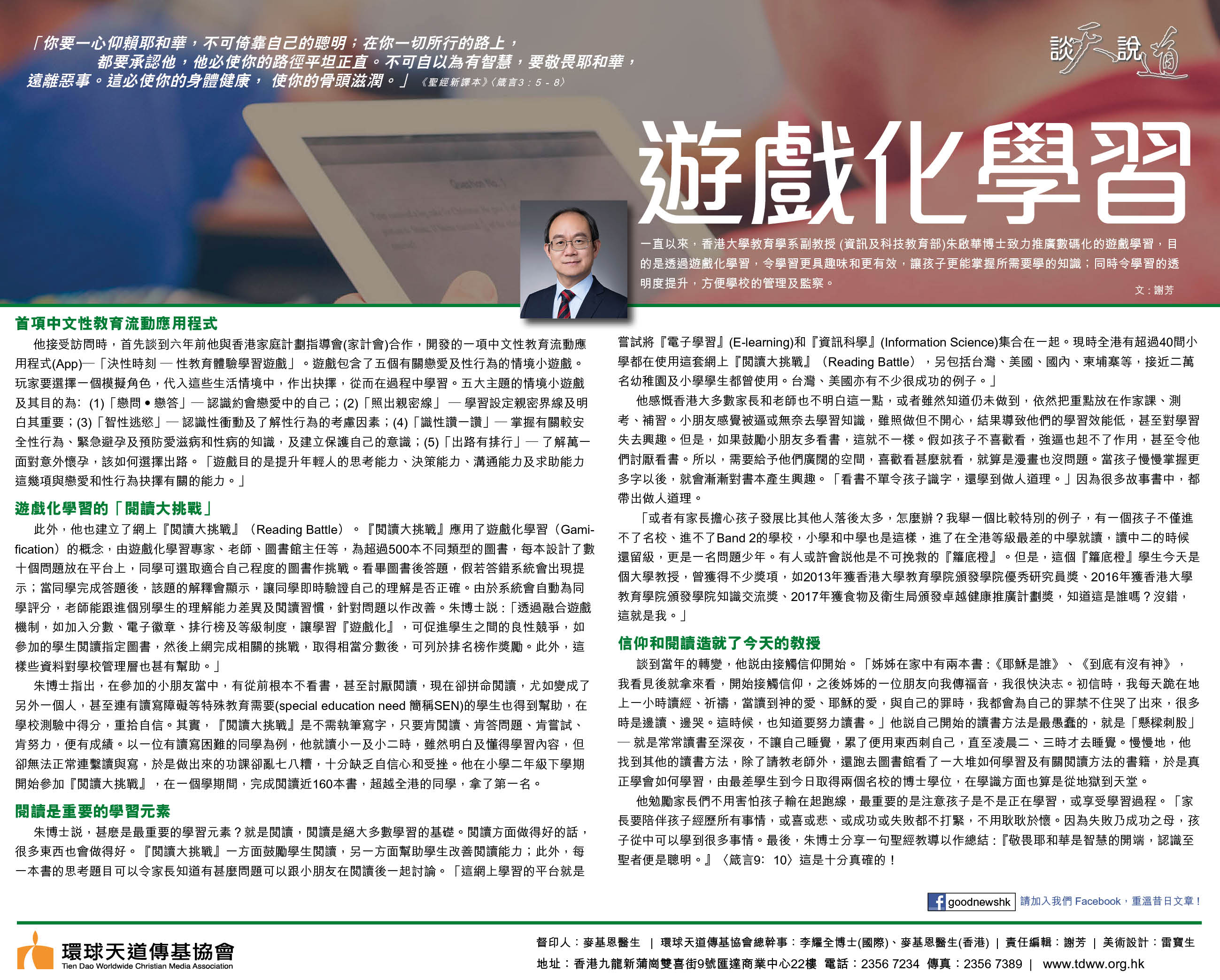 一直以來,香港大學教育學系副教授 (資訊及科技教育部)朱啟華博士致力推廣數碼化的遊戲學習,目的是透過遊戲化學習,令學習更具趣味和更有效,讓孩子更能掌握所需要學的知識;同時令學習的透明度提升,方便學校的管理及監察。