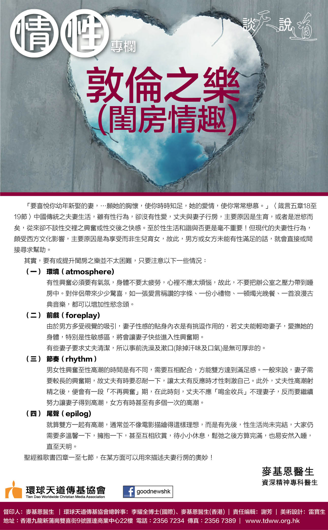 聖經雅歌書四章一至七節,在某方面可以用來描述夫妻行房的奧妙!