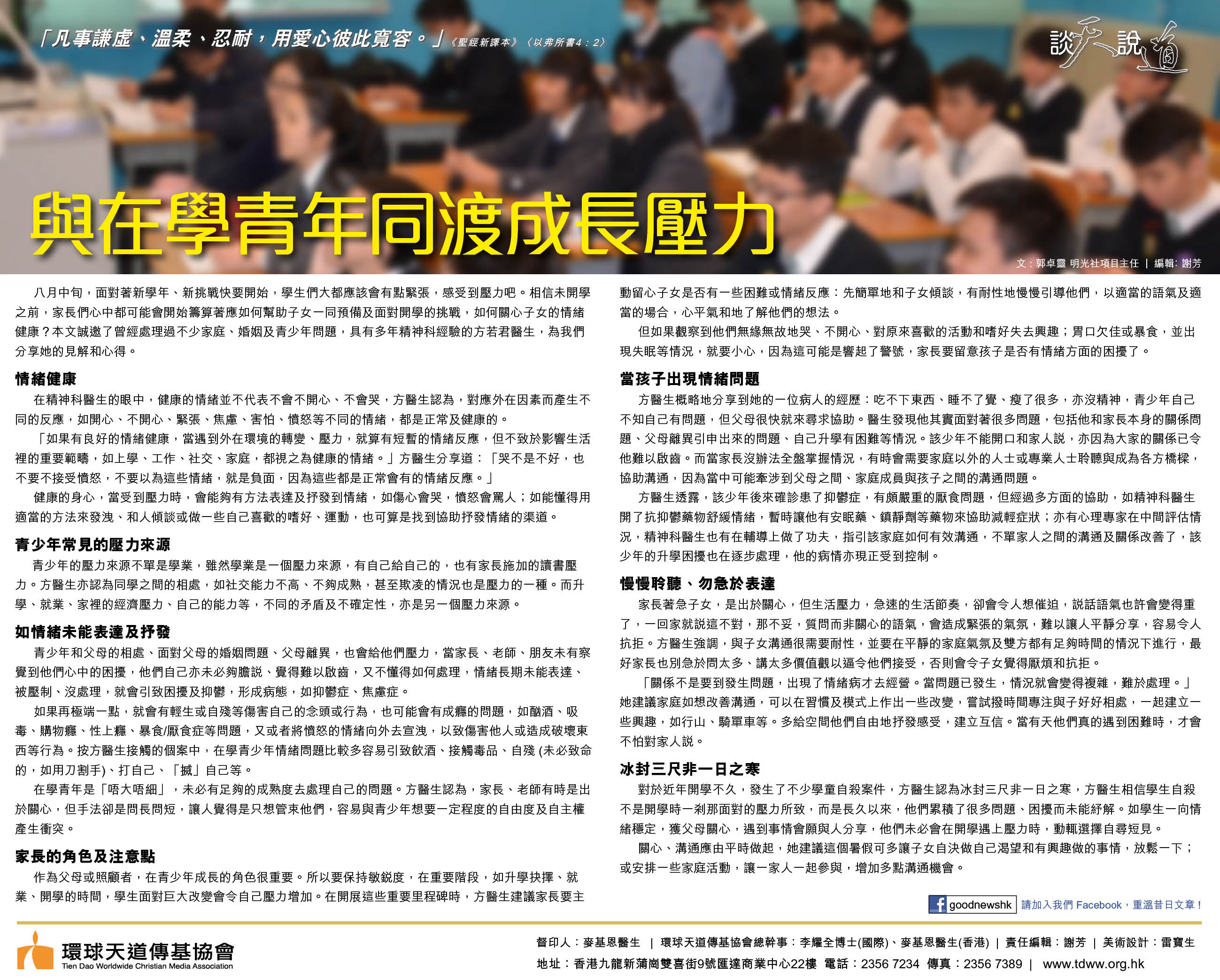 八月中旬,面對著新學年、新挑戰快要開始,學生們大都應該會有點緊張,感受到壓力吧。相信未開學之前,家長們心中都可能會開始籌算著應如何幫助子女一同預備及面對開學的挑戰,如何關心子女的情緒健康?