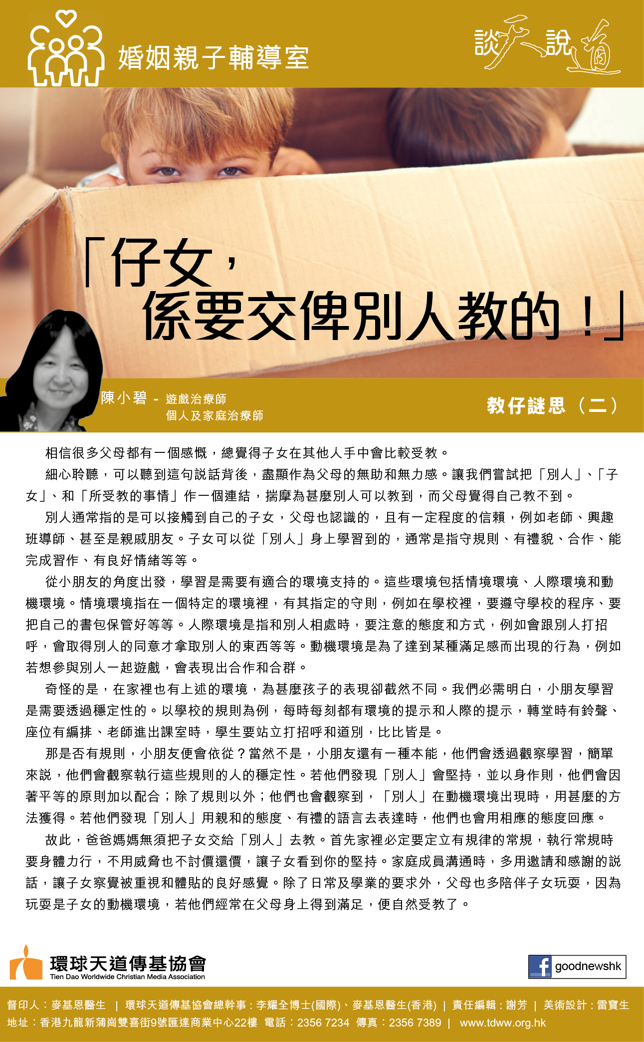 細心聆聽,可以聽到這句說話背後,盡顯作為父母的無助和無力感。讓我們嘗試把「別人」、「子女」、和「所受教的事情」作一個連結,揣摩為甚麼別人可以教到,而父母覺得自己教不到。