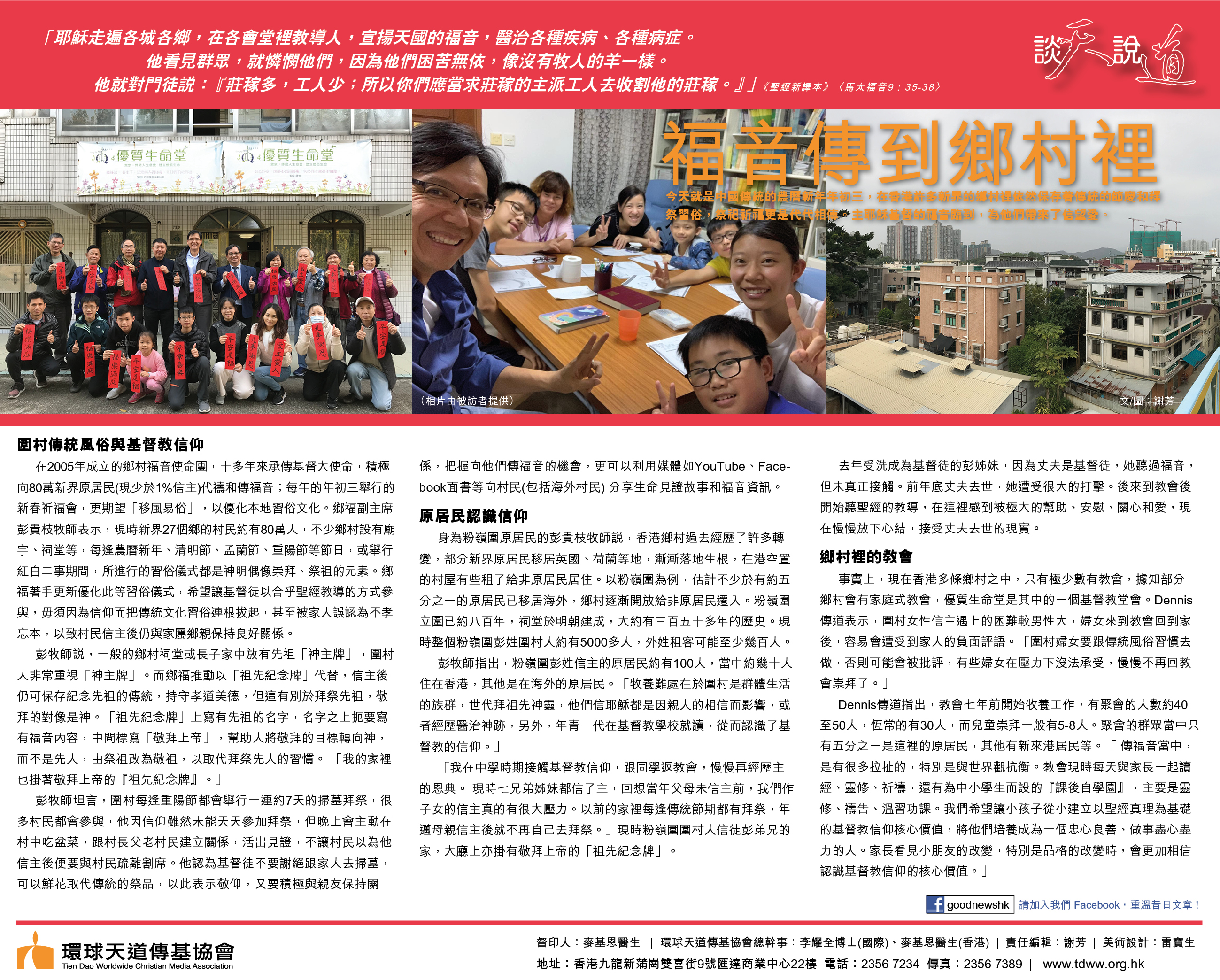 今天就是中國傳統的農曆新年年初三,在香港許多新界的鄉村裡依然保存著傳統的節慶和拜祭習俗,祭祀祈福更是代代相傳。主耶穌基督的福音臨到,為他們帶來了信望愛。