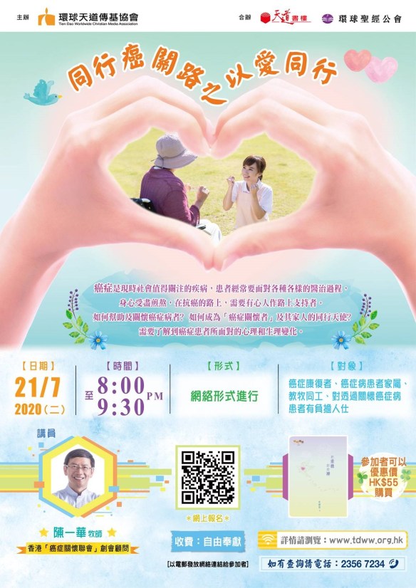 對於這次疫情,我感覺是上主提醒我們,無論得時、不得時,也要用諸般的智慧把整全的福音傳出去。這包括用不同的社交媒體,為不同的群體製作與信仰合宜的工作。故此,在各同工努力之下,我們開拓了新項目,有提供「創傷與治療」及其他關於身心靈健康的網上課程,又有充實每一天的《心靈雋語》牧者回應版;出版新書《心之甘霖》(新書推介https://tdww.org.hk/category/最新出版/),以及編輯一些「逆境查經」資料等等。我在這裡特別介紹一個免費講座,就是將於本月21日晚上8時舉行的網上「癌關」講座;講員就是有非常豐富「癌關」經驗的陳一華牧師。敬請大家支持、參與及推介,並在禱告中紀念。