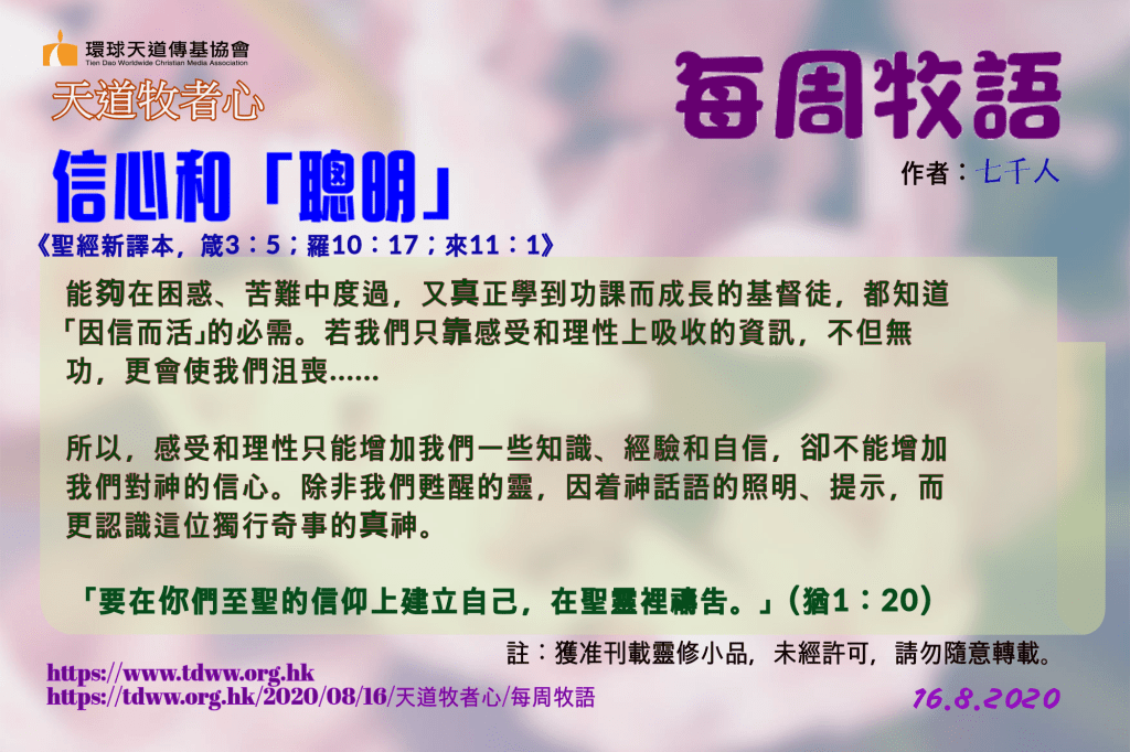 註:獲准刊載靈修小品,未經許可,請勿隨意轉載。