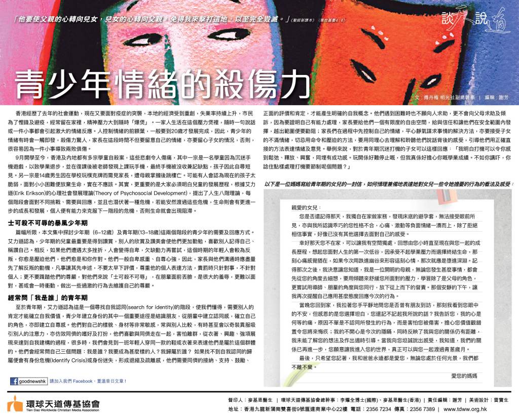 「談天說道」青少年情緒的殺傷力