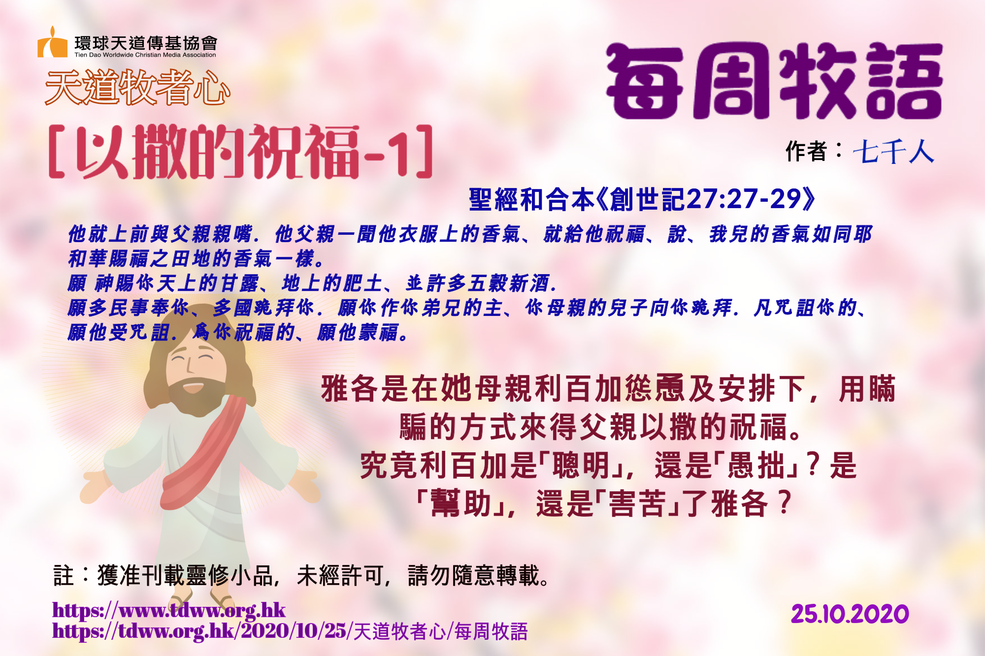 註:獲准刊載靈修小品,未經許可,請勿隨意轉載。