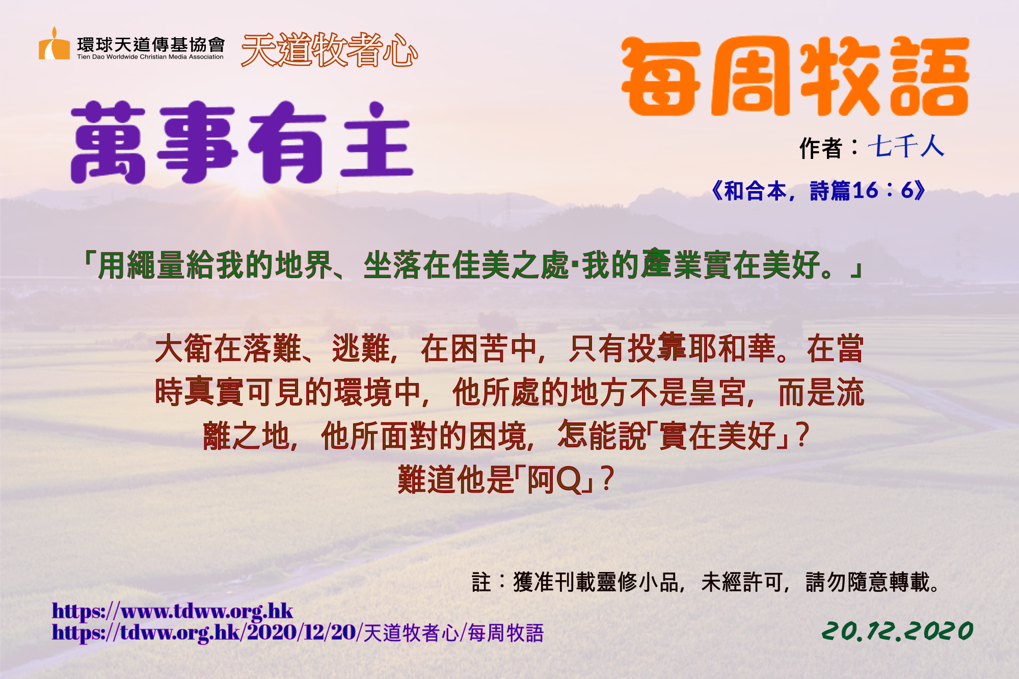 註:獲准刊載靈修小品,未經許可,請勿隨意轉載。