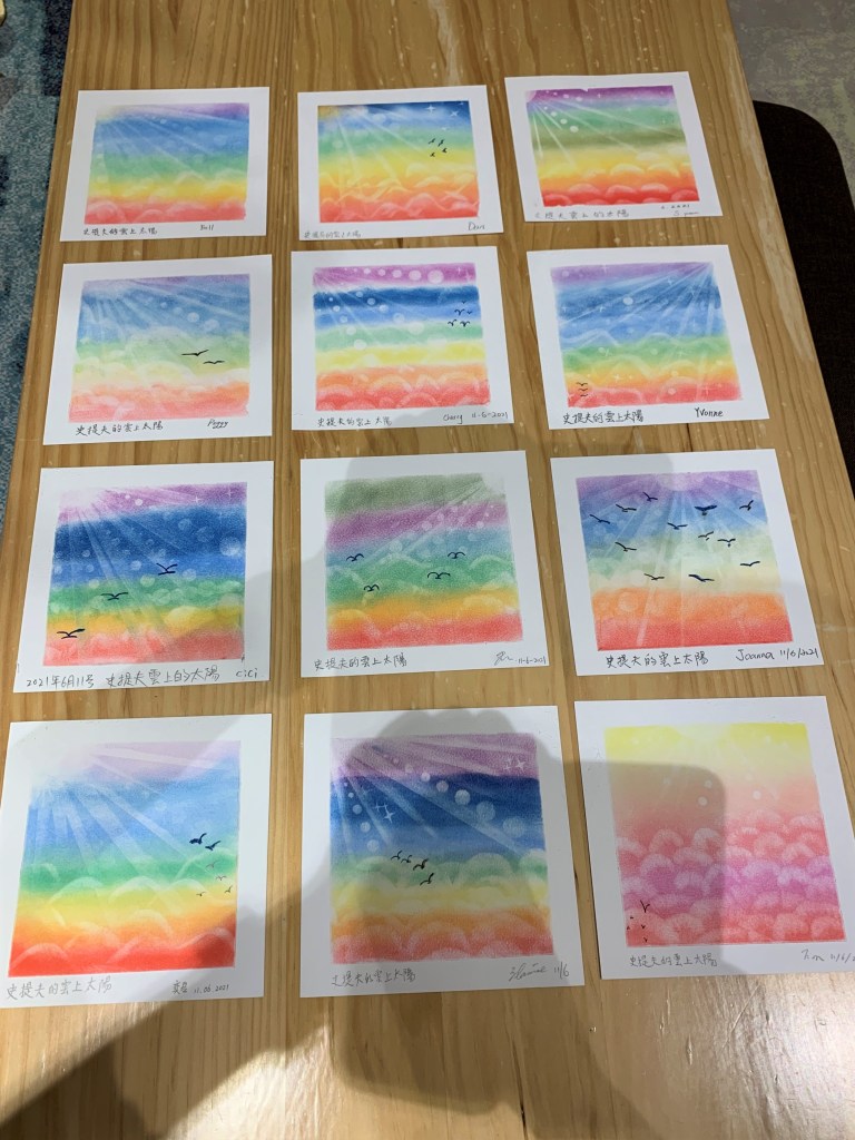 (5) 每一幅「雲上太陽」,都透露了媽媽心中的彩虹和陽光。