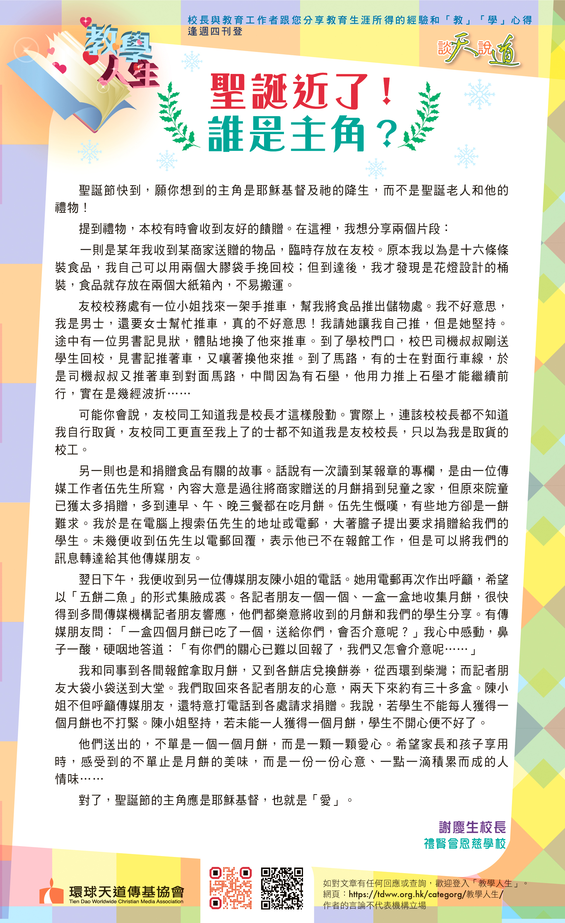 聖誕節快到,願你想到的主角是耶穌基督及祂的降生,而不是聖誕老人和他的禮物!