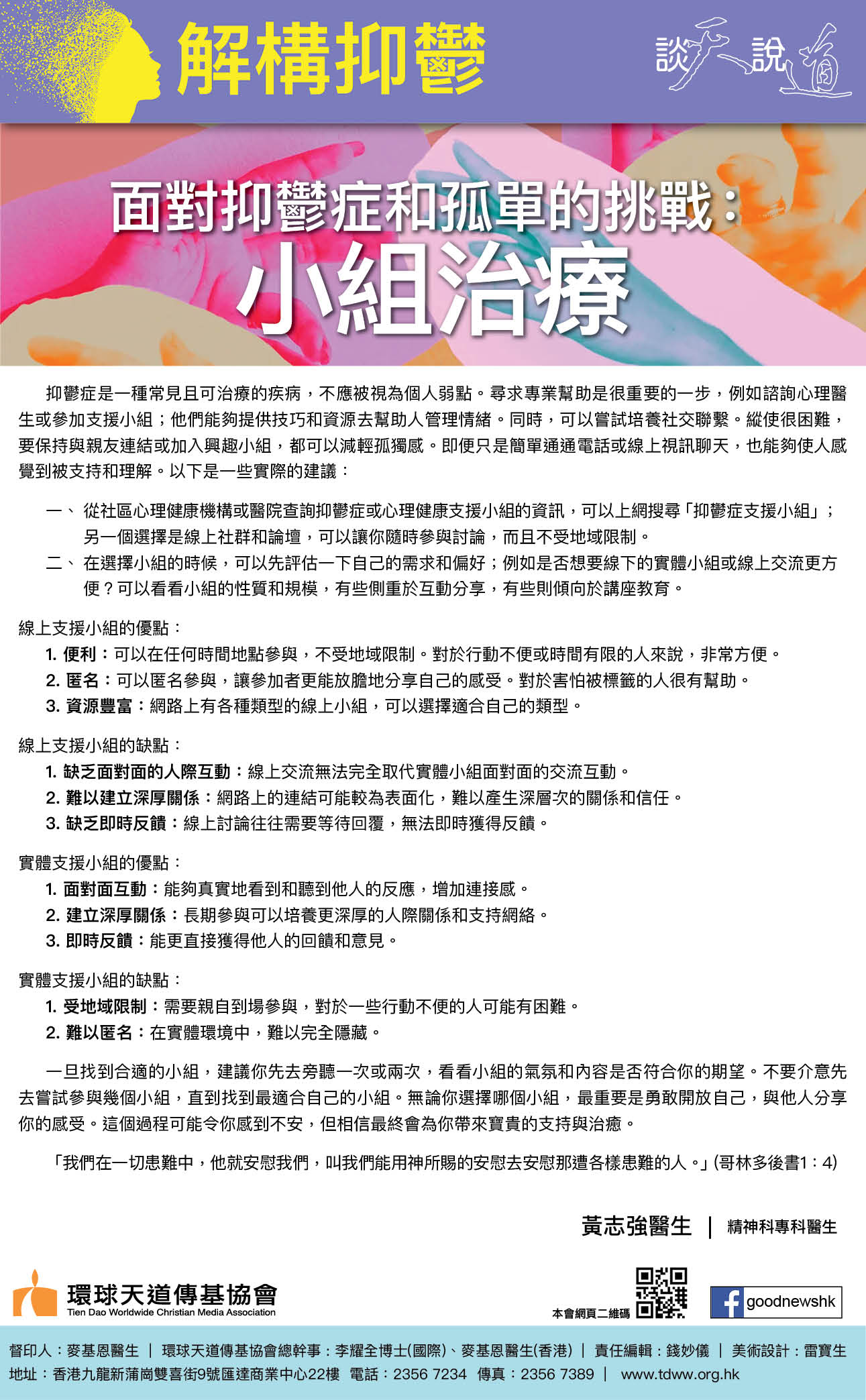 解構抑鬱 之 面對抑鬱症和孤單的挑戰:小組治療