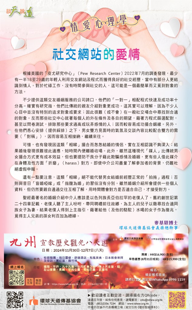 根據美國的「皮尤研究中心」(Pew Research Center)2022年7月的調查發現,最少有一半18至29歲的年輕人利用交友網站及程式而獲得良好的社交經歷,當中有部分人更結識到情人。對於忙碌工作、沒有時間參與社交的人,這可能是一個最簡單而又覓得對象的方法。