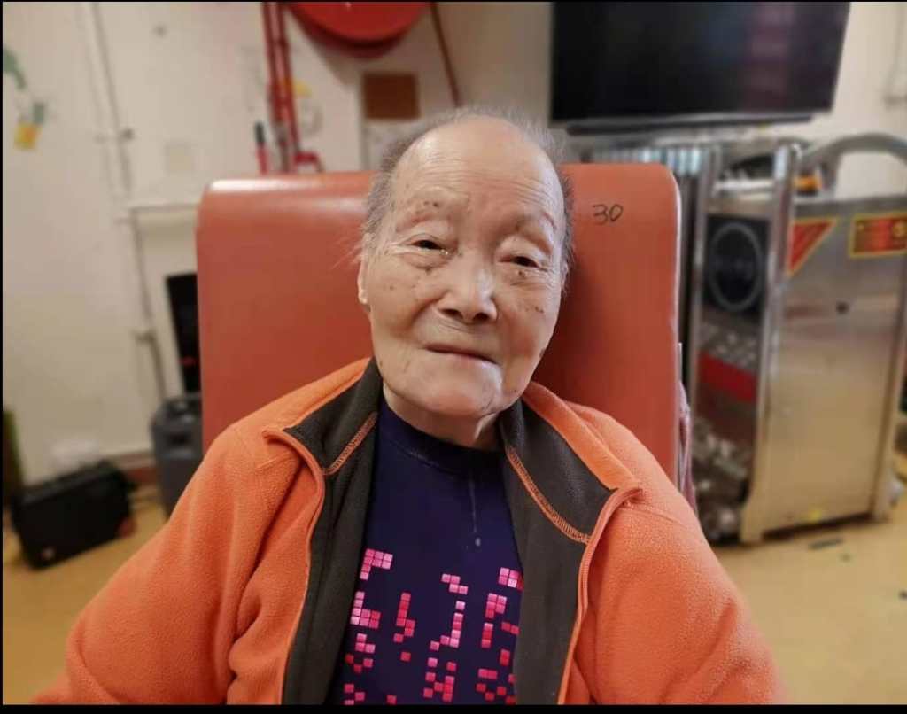 認識張婆婆之時,她已93歲,患腦退化症(又稱「認知障礙症」)多年,已達到失去說話能力及對外界事物沒有反應的階段;每天除了臥床,就是坐在輪椅上渡日,等待照顧者按時給她餵食。初期與婆婆接觸,明明面對活生生的人,卻好像面對著亳無反應的「鐵板」,加上她沒有焦點的眼睛,實在令人感到不忍心,也不舒服。