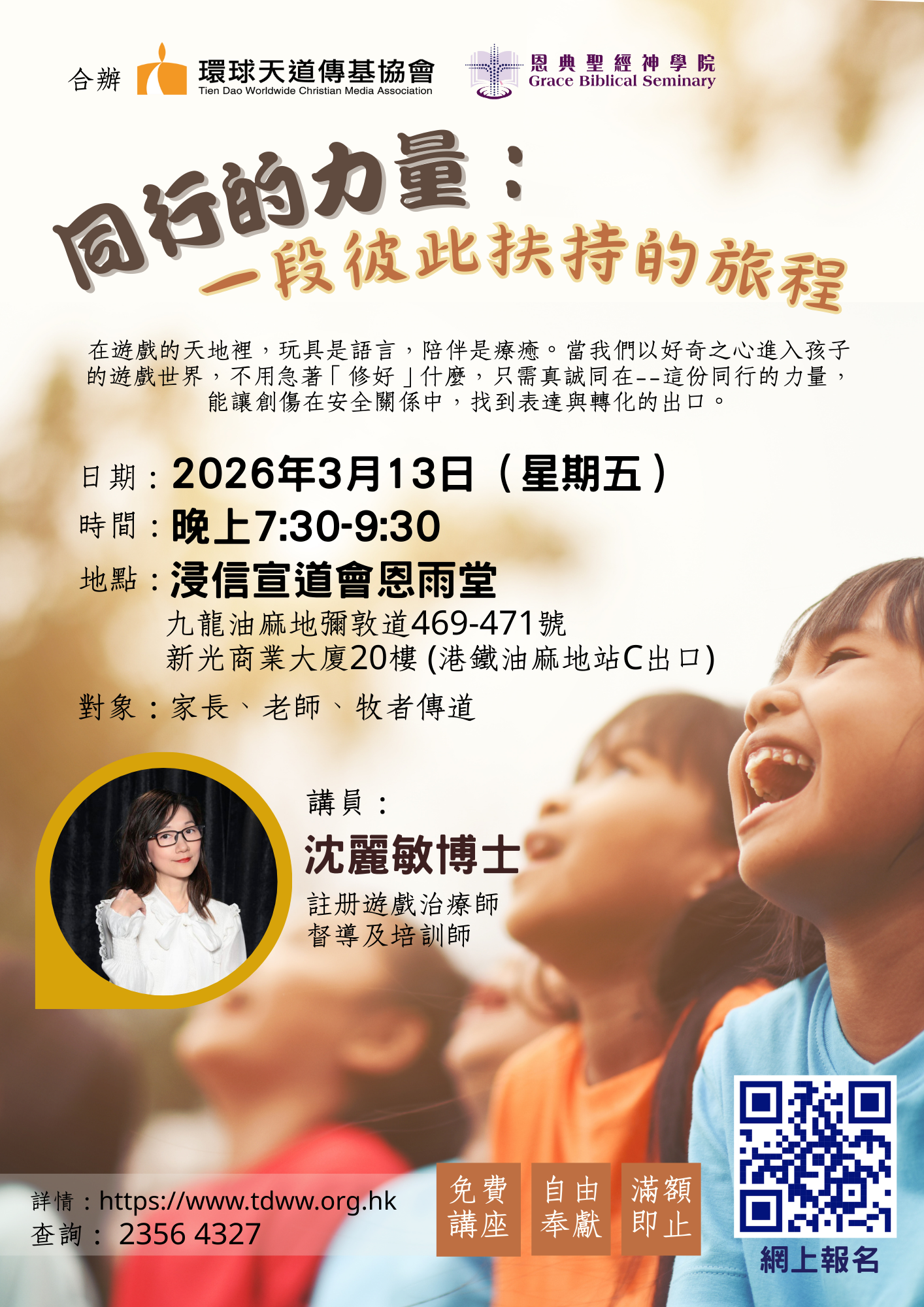 講 員:沈麗敏博士 ︱註册遊戲治療師、督導及培訓師