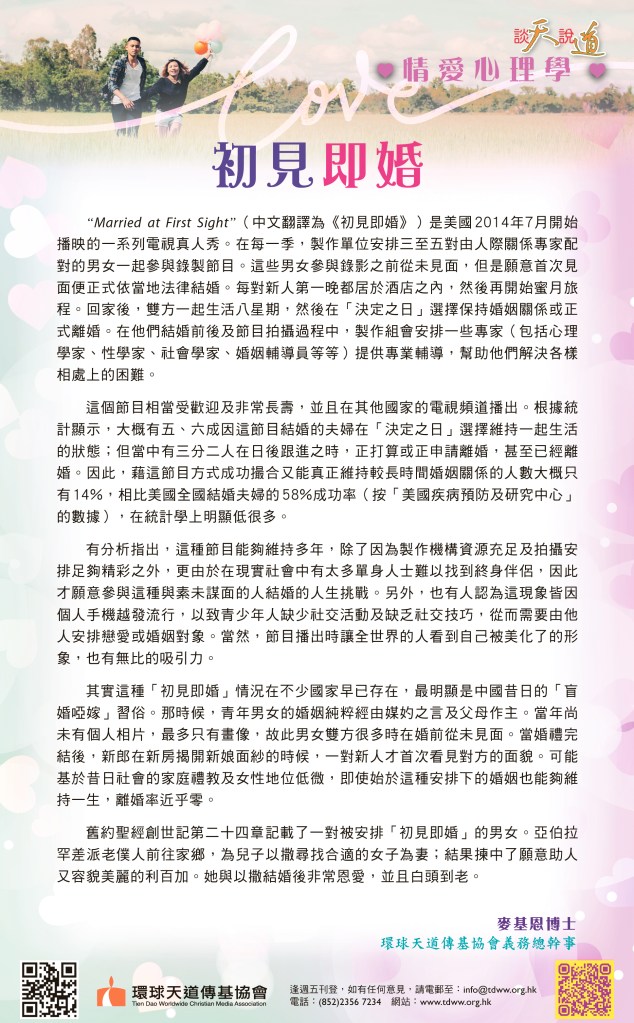 有分析指出,這種節目能夠維持多年,除了因為製作機構資源充足及拍攝安排足夠精彩之外,更由於在現實社會中有太多單身人士難以找到終身伴侶,因此才願意參與這種與素未謀面的人結婚的人生挑戰。另外,也有人認為這現象皆因個人手機越發流行,以致青少年人缺少社交活動及缺乏社交技巧,從而需要由他人安排戀愛或婚姻對象。當然,節目播出時讓全世界的人看到自己被美化了的形象,也有無比的吸引力。