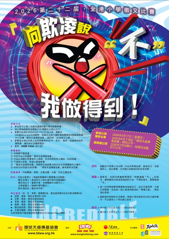 第二十二屆全港小學徵文比賽2026開始徵稿啦!(四月十七日截止)