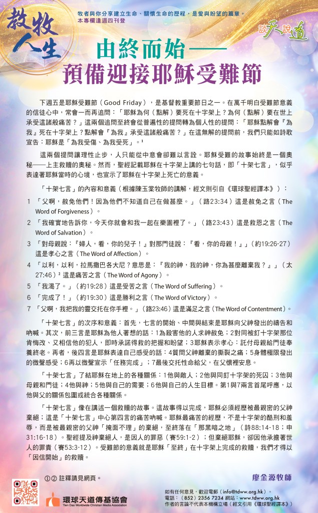 教牧人生:由終而始——預備迎接耶穌受難節