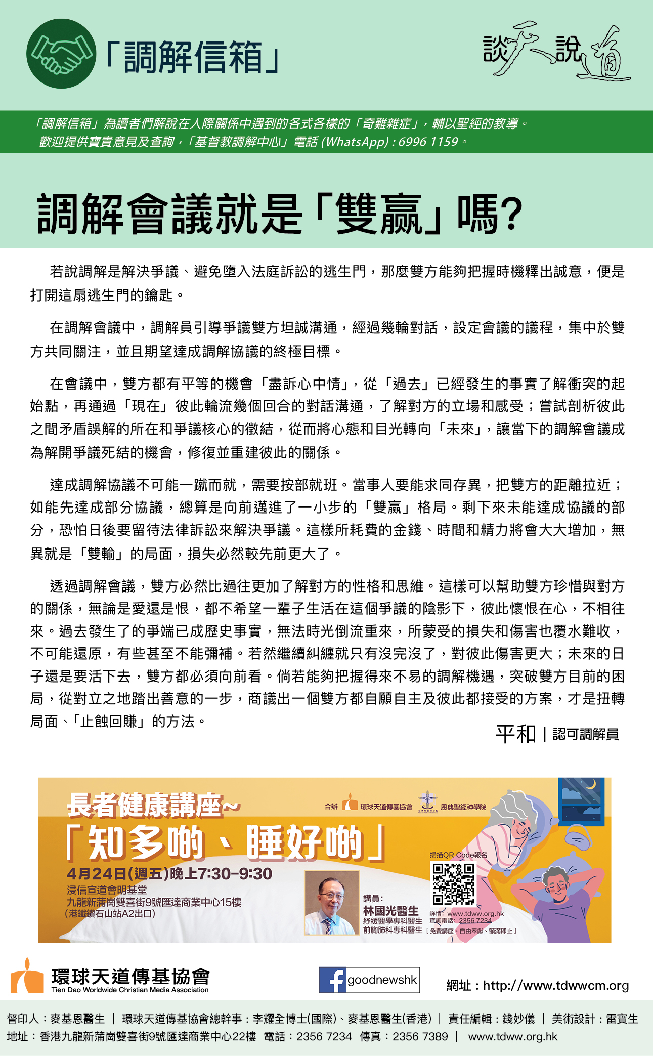 若說調解是解決爭議、避免墮入法庭訴訟的逃生門,那麼雙方能夠把握時機釋出誠意,便是打開這扇逃生門的鑰匙。