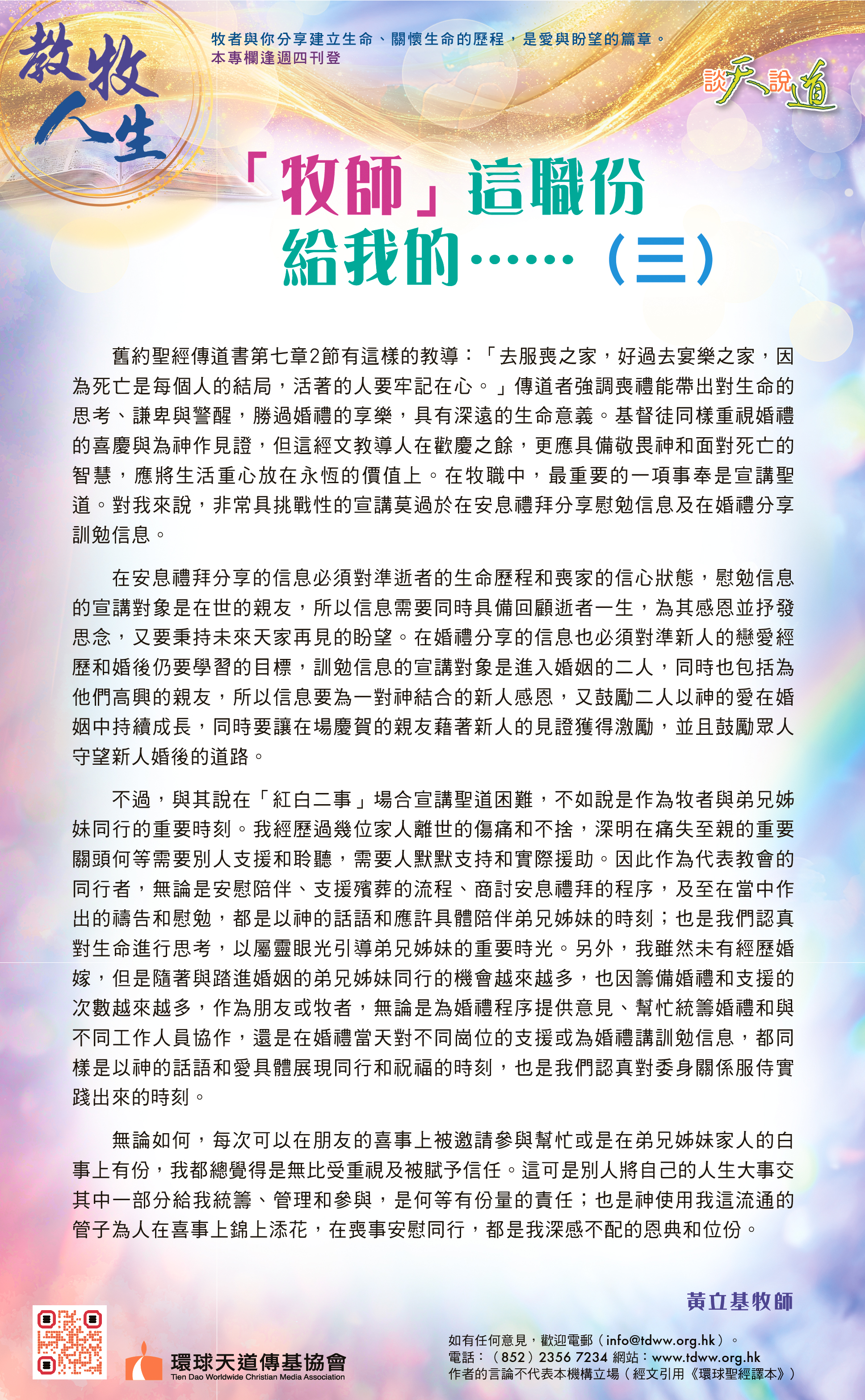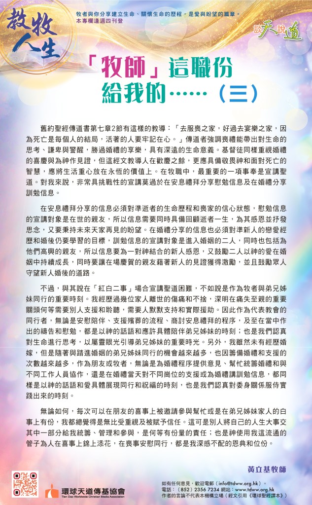 教牧人生:「牧師」這職份給我的……(三)