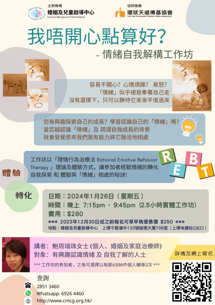 本工作坊將提供一個整全模式 — 「基督教靜觀」和「接納與承諾治療」,幫助信徒從心理學角度了解靜觀背後的操作和價值,並整合基督教靈性傳統,發展出一套更適合信徒的心理輔導模式。此外,基督教接納與承諾治療更能結合靜觀覺察、接納經驗和價值行動的優點,提倡心理靈活性的重要性,幫助信徒過一個委身、有異象和豐盛的人生!