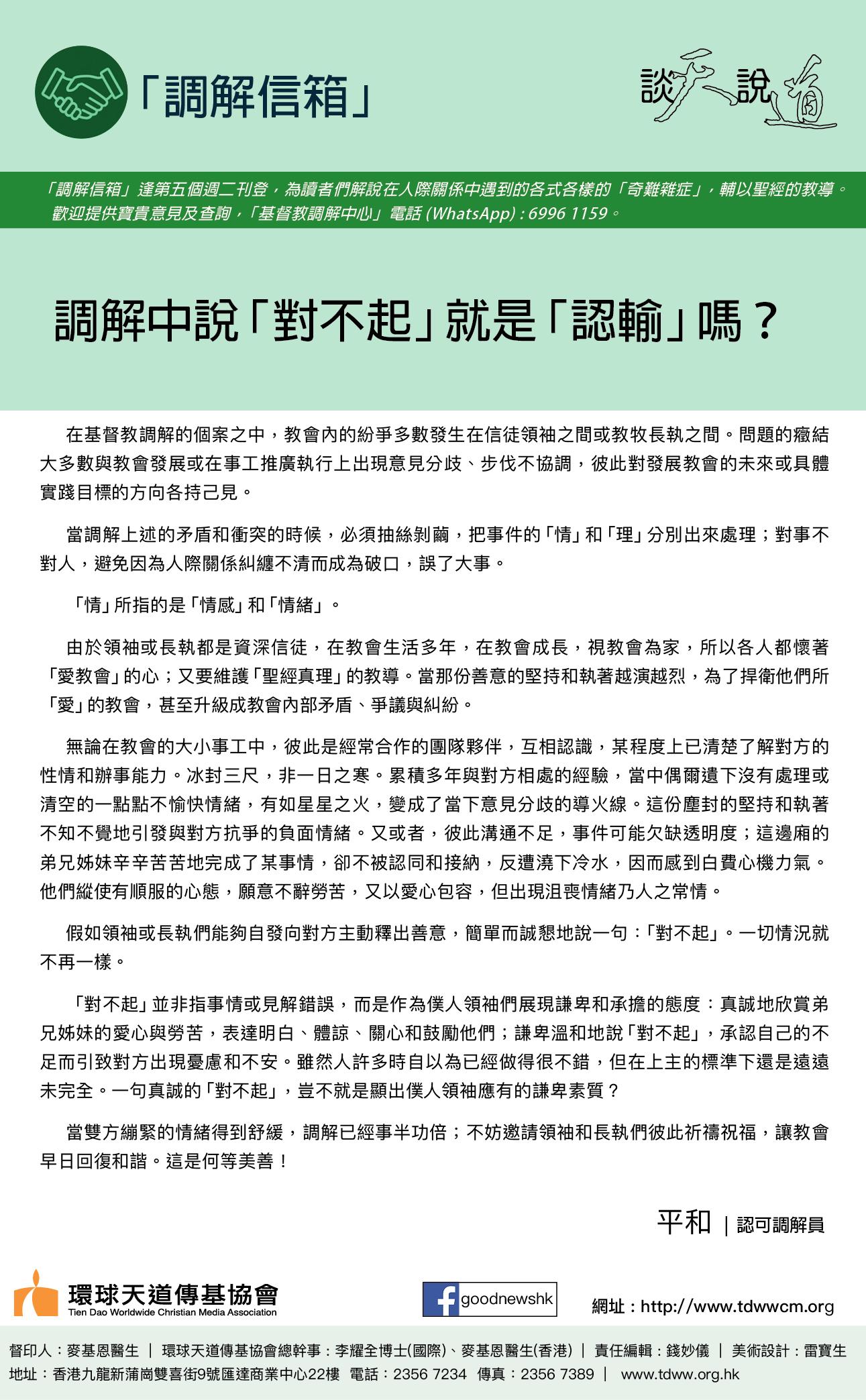 爭議雙方好不容易經過多番折騰、幾輪會議,在調解員的協助和引導下,摸著石頭一步一步向前行。雙方坦誠地對話,把各自關注的爭議和糾結抽絲剝繭解開,不但了解事件本身的來龍去脈和關鍵所在,更難得能夠面對面現場真情對話,彼此的關係再次接上,並且是生命更新的體驗。