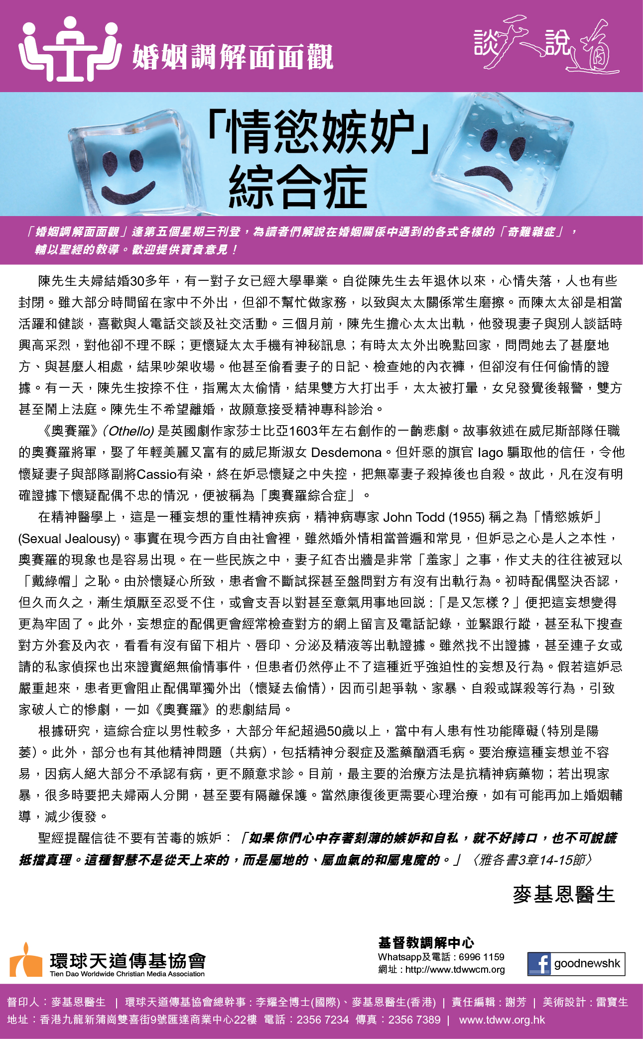 一個患有嚴重病態嫉妒的丈夫,在毫無證據之下,只因妄想妻子另有情人而給他帶上「綠帽」,憤怒之餘亂刀把妻子殺死。假若他能接受治療而復元,相信會後悔莫及。但此刻應該如何審判他?