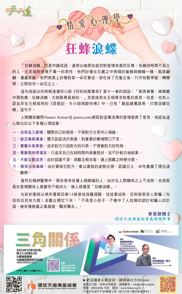 二、思想與認知:想到未來的日子,特別是某些假期、外出活動,便自然考慮到邀請對方一起參與,減少只有自己的單獨生活。與其他人在一起的時候,會特別留意對方的一舉一動,並把對方的缺點加以美化,沒有企圖要求對方改善。