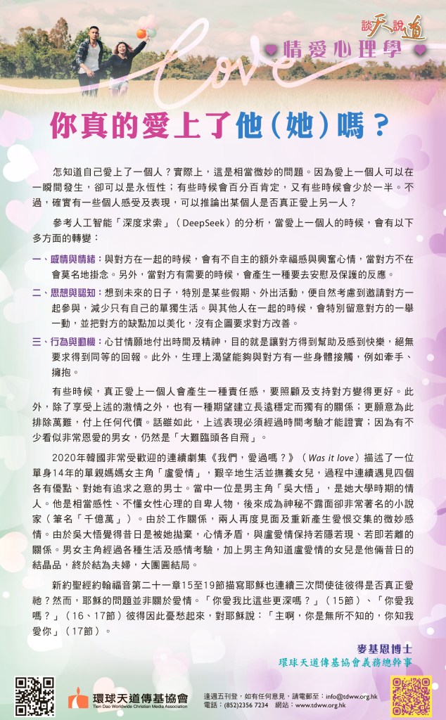 怎知道自己愛上了一個人?實際上,這是相當微妙的問題。因為愛上一個人可以在一瞬間發生,卻可以是永恆性;有些時候會百分百肯定,又有些時候會少於一半。不過,確實有一些個人感受及表現,可以推論出某個人是否真正愛上另一人?