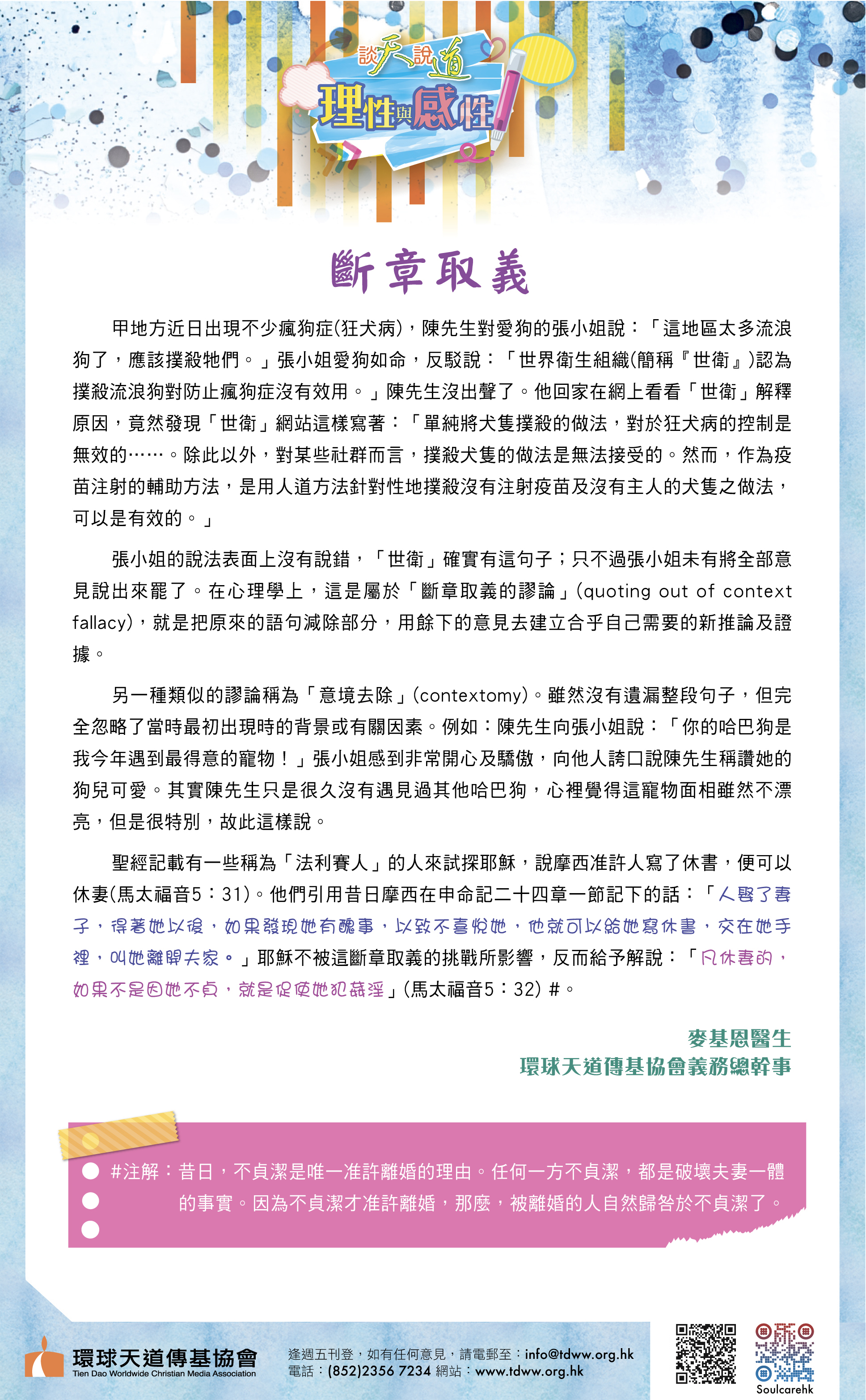 複診的時候,她主動告訴我這件事情令她非常困擾。我告訴她,就算當時說明了創業的初衷也沒用。因為不喜歡你的人,無論你怎樣說,也不會喜歡你。這是一種偏見,就算是事實也不會改變他們的想法;再者,人的歲數不一定能反映他們生命成熟的程度。「出得嚟行」,就早預料到有人喜歡你和不喜歡你。你根本無法取悅所有人,正如明星有粉絲(fans),也會有黑粉(haters)。太在意不喜歡你的人對你的評價,只會徒添煩惱。其實不用為了遷就那些不喜歡你的人,故意隱藏自己,放棄去做應該做的事情。上天給你的聰明、才幹、使命是怎樣,便盡情發揮吧!畢竟你的人生並不是為討厭你的人而活。