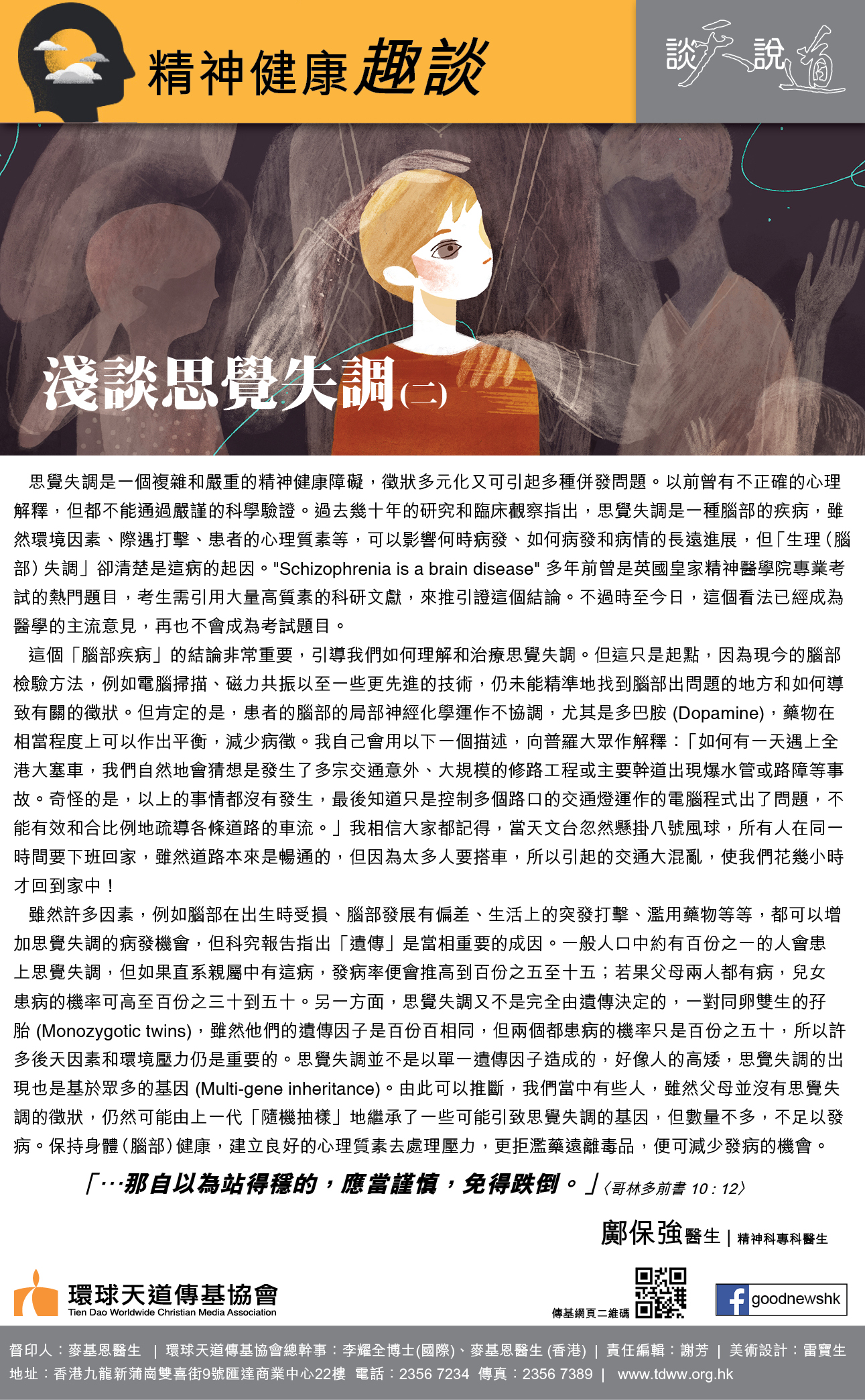 有時會遇上一些從骨科轉介過來的病人,多數是因為工傷意外後的情緒問題,或者是長期背痛但卻找不出原因的。月前,轉介來的是一位40多歲的女病人,有陣發性的雙腿無力。經過詳細問診後,才知道她曾有幾次到商場和街市時,突然出現心跳、呼吸困難和「心慌慌」,繼而更下肢無力,不能走路,在不知所措之下,最後致電家人前來,有人幫助下才能回家。自此之後,她憂心再有「腳軟」情況,故盡量不出外,但可惜在家中偶而仍會出現這些間歇性下肢無力。這年來,她已看過不同的專科,例如腦神經科,最後在骨科醫生游說下才願意來看精神科。其實,她患的是「驚恐症」(Panic disorder),只不過她的注意力聚焦在那突然腳軟的問題上,而忽略了自己一直以來的焦慮情緒。