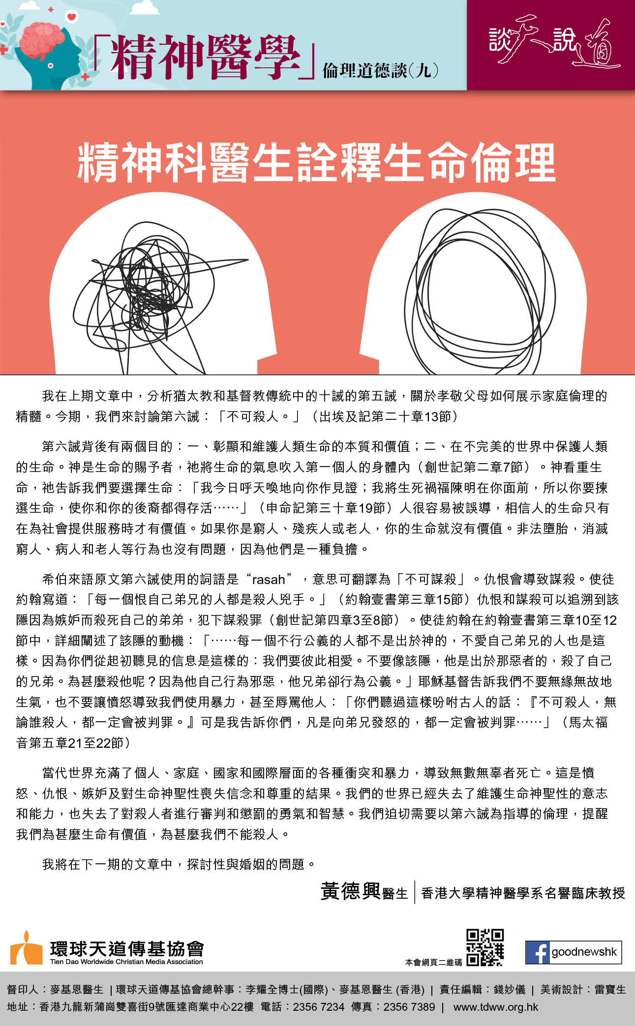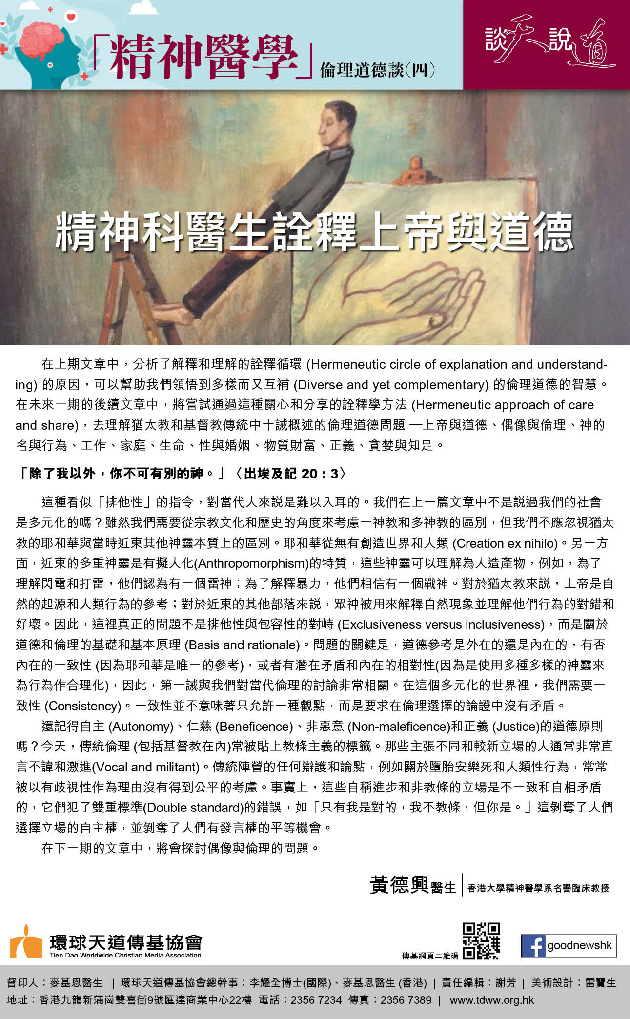 本文是本系列十三篇文章中最後一篇。本系列探討精神科醫生如何通過釋經學、聖經的人觀和神學、人類學的視角來反思十誡的倫理。筆者真誠地希望本系列的文章能夠激發一些關於基督教倫理與當代世界的相關性和完整性的討論。筆者還想強調,對我們基督徒來說,以知情的方式閱讀和解釋聖經並將其應用到我們的日常生活中,是非常重要的事情。願神的話祝福我們,一切榮耀歸於我們的主!