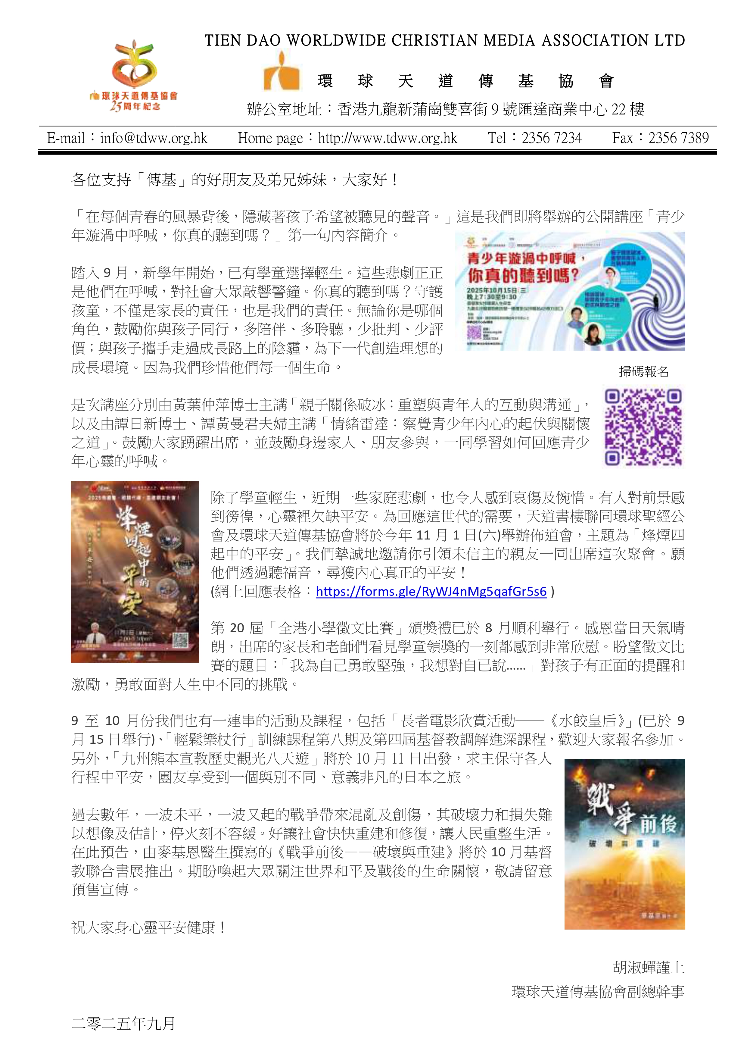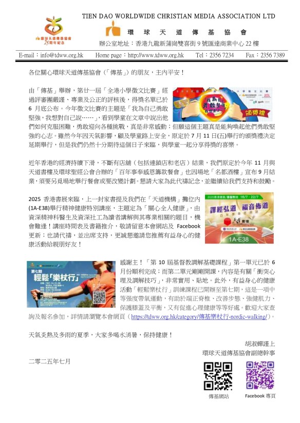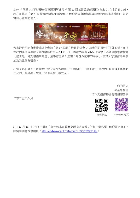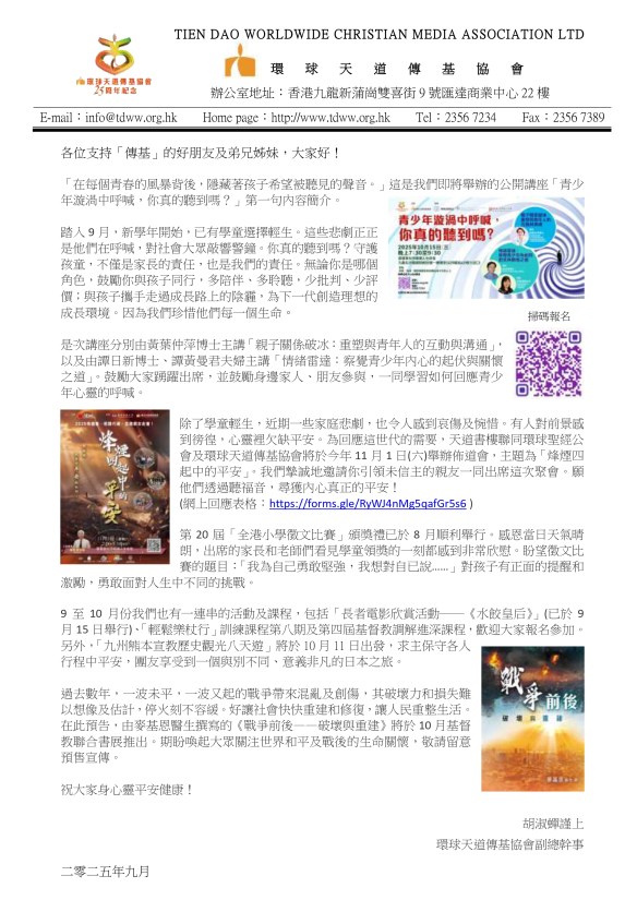 親愛的弟兄姊妹,願我們在主裡彼此勉勵,無論在福音事工、財政需要或個人成長之上,都同心依靠神。深信只要我們忠心事奉,神必定親自成就。