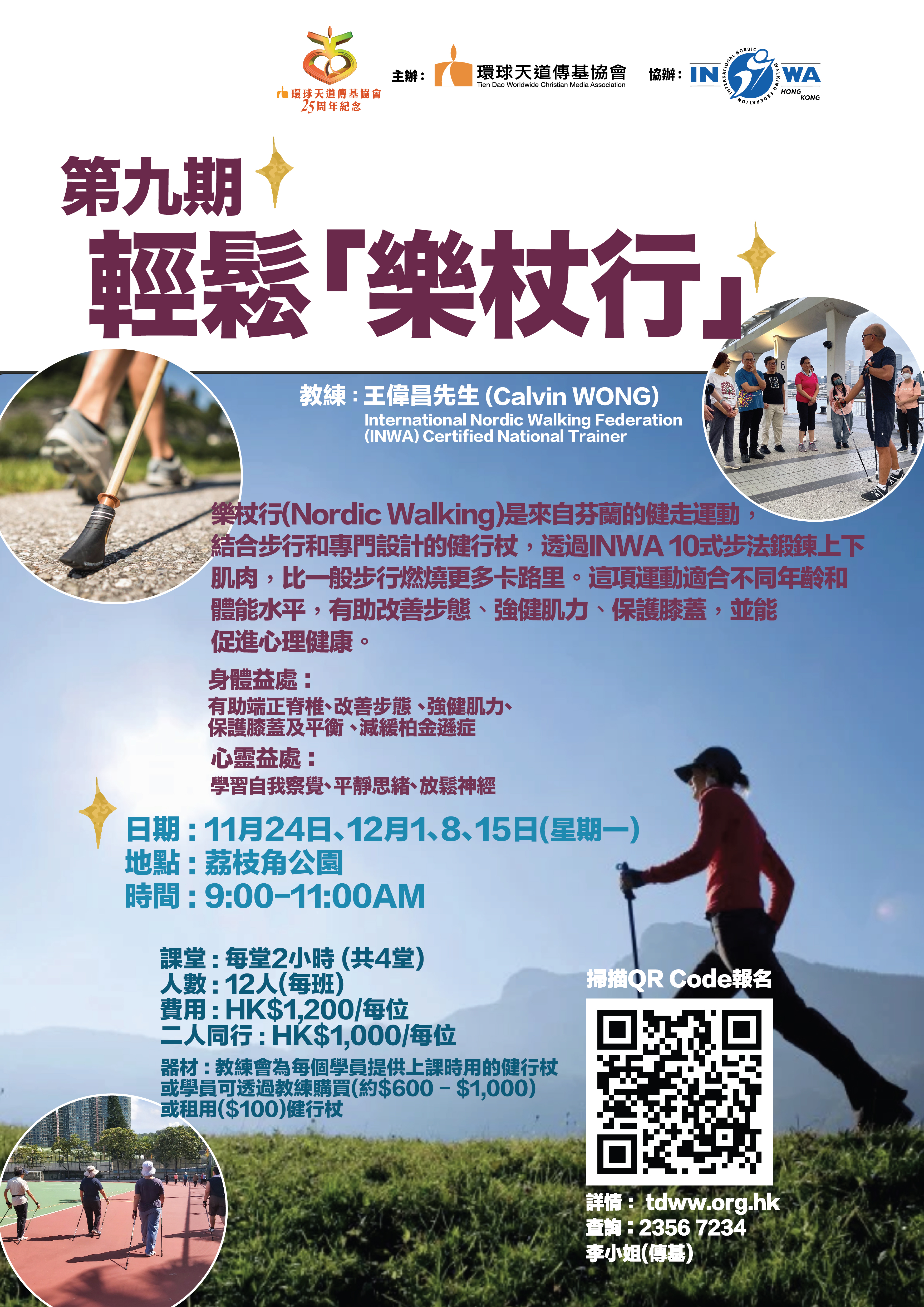 另外,有益身心的「輕鬆樂杖行」第九期也快將開課。期望參加者透過訓練課程有效改善步態,減輕關節負擔,並且預防及改善慢性疾病,促進身心健康。