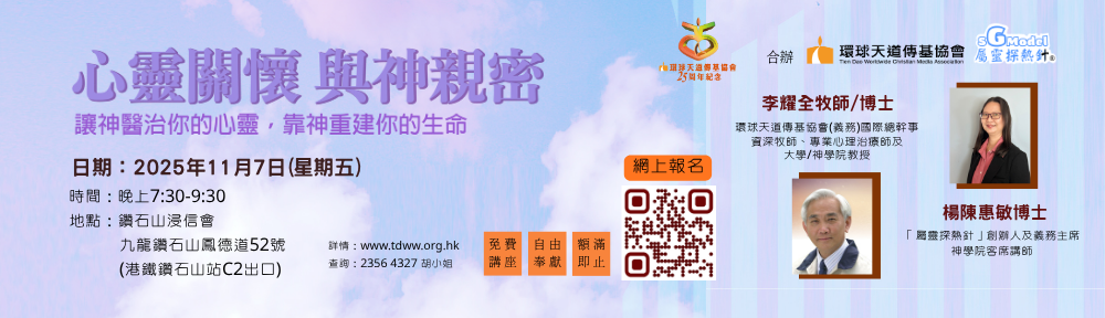 11月7日晚上舉辦的「心靈關懷‧與神親密」講座蒙主祝福,參加者都表示獲益良多。感謝主!我們深切期盼,他們的靈命能夠靠閱讀神的話語重新建立。
