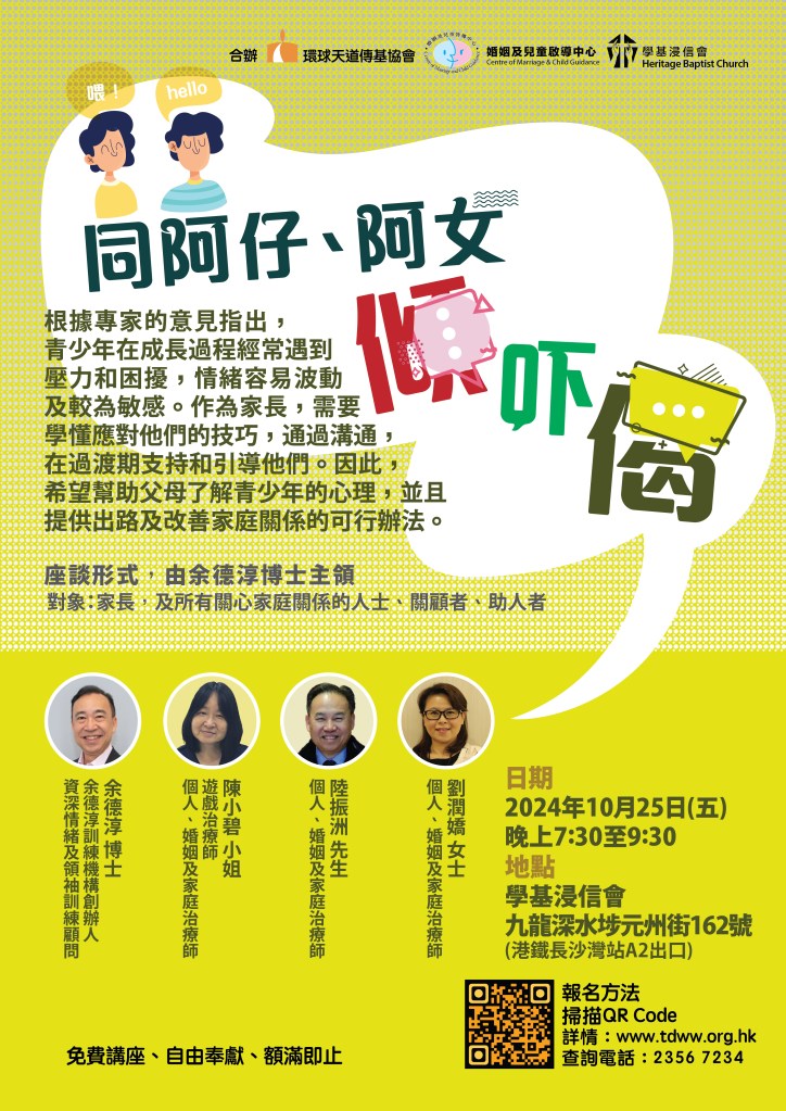 對象:家長及所有關心家庭關係的人士、關顧者、助人者