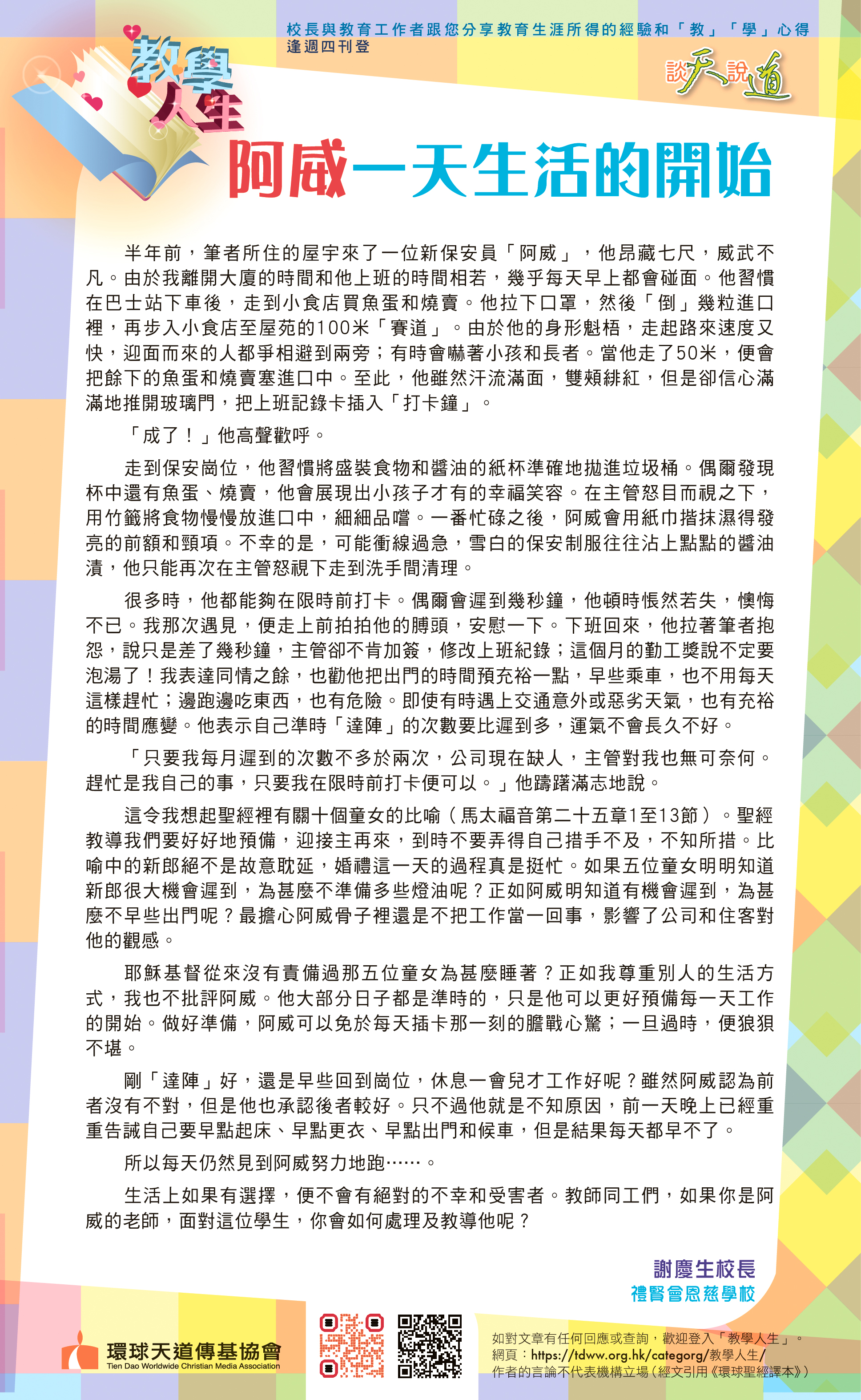 邊想邊吃,很快就把糉子吃光,推敲也完結;而心中的溫暖卻彌久不散。雖然是小事一樁,但背後的心意卻不簡單,叫人感動。還記得主耶穌之所以讚揚窮寡婦所投的兩個小錢,或是耶和華接納各種獻祭,或是向祂敬拜;祂所要的,無不是人們真心的獻呈。所以,只要真心待人,就算是千里送鵝毛,也會慶幸自己在這關係上有份。因此,心中感恩,感恩學校有這樣的家長;也因為有一群好老師、一些願意求進步的學生,才能出現這件不平凡的「小事」。