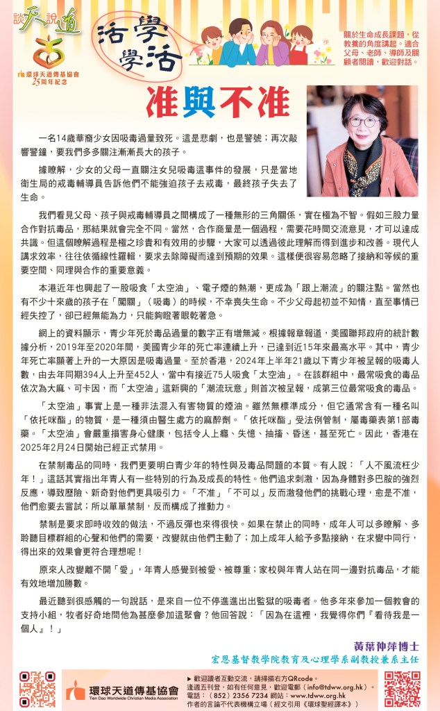 一名14歲華裔少女因吸毒過量致死。這是悲劇,也是警號;再次敲響警鐘,要我們多多關注漸漸長大的孩子。