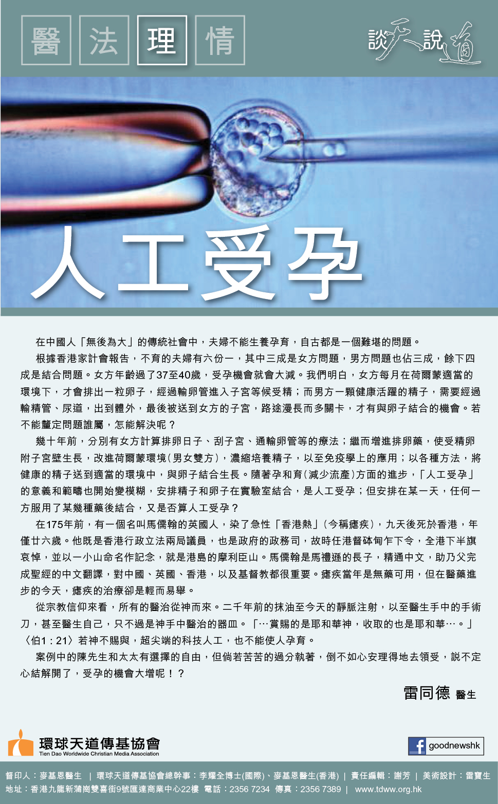 筆者不時遇上一些在感染控制上不合作或不重視的同事,有人覺得那只是小事一樁;有人投訴指引要求「無時無刻」潔手,引致他們手部皮膚敏感;有人嫌麻煩及花時間。我想藉本文帶出一個信息,路加福音16:10中耶穌說:「在極少的事上忠心的,在許多事上也忠心」,若在潔手一事上都做不好,更不用說甚麼更深的醫學知識及技巧。況且,感染控制絕不是一件小事,沙士爆發已是前車之鑑。難道你願意自己雙手成為傳播抗藥性細菌給病人的媒介、令他人受苦的源頭嗎?