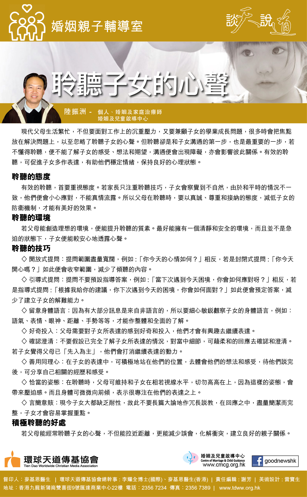 (3) 父母常在身邊作支持﹕青少年的內心深處希望父母可以求援,但同時,他們又認為父母無暇理會他們,即使有時間亦不會真正瞭解他們的難處,所以傾向不與父母分享。故此,讓青少年知道自己是父母的優先,父母隨時樂意提供支援是最重要的。