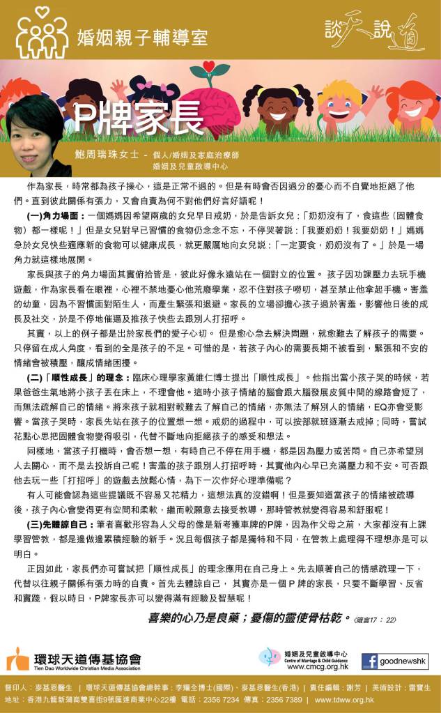 (4) 鼓勵他們發揮自己的強項﹕父母與青少年在過程中一起尋找他們的優點特質,使他們對自己更有自信和能力向前行。
