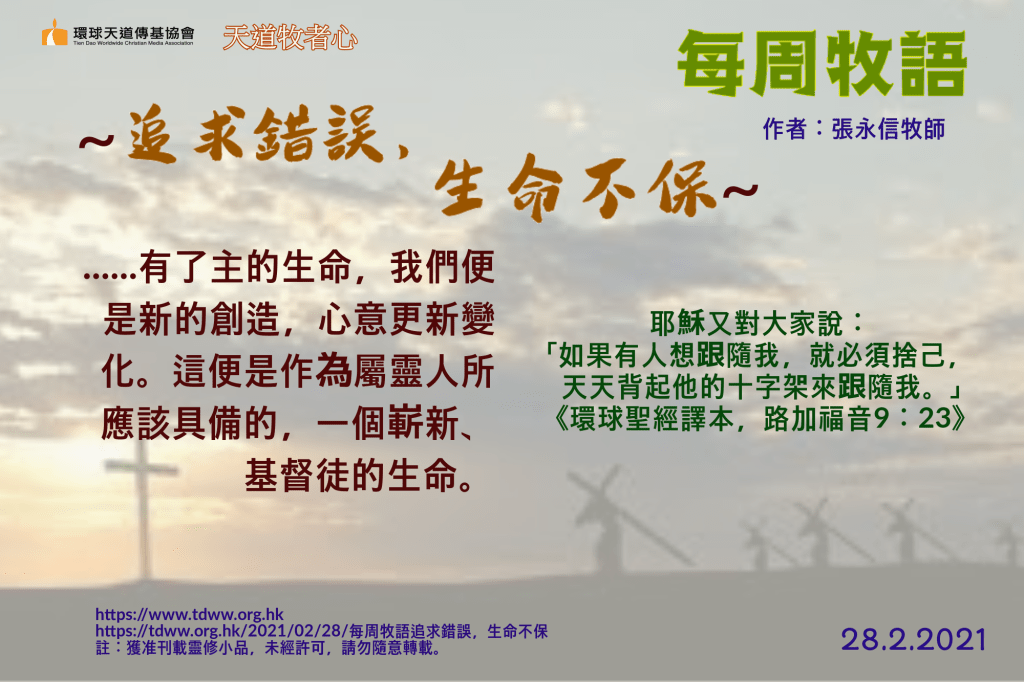 註:獲准刊載靈修小品,未經許可,請勿隨意轉載。