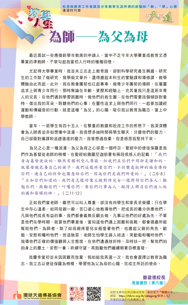 因應老師們的課堂回饋,我隨即修改下一堂課「價值觀教育」原本已備妥的內容,添加了我服務的學校及我所知的其他友校推動價值觀教育的實際經驗。另外,為了彌補上一次「課程」的不足,得到香港中文大學允許後,我在第二堂課的首二十分鐘,與老師分享了自己開展和推動課程的實際情況和成效,然後才開始「價值觀教育」課題。