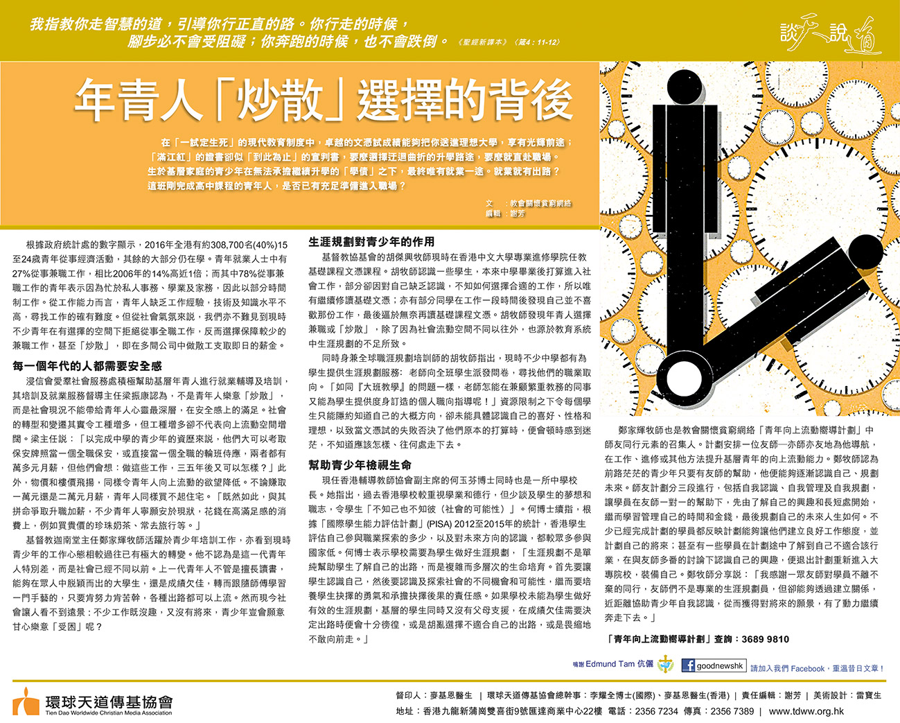 「所以,你們行事為人要謹慎,不要像愚昧人,卻要像聰明人。要把握時機,因為這時代邪惡。因此,不要作糊塗人,要明白甚麼是主的旨意。」《聖經新譯本》〈以弗所書5﹕15-17〉