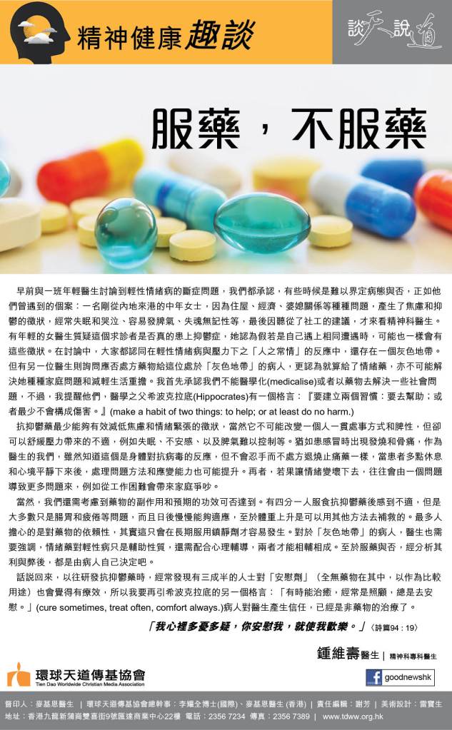 移居加拿大温哥華的阿强今年剛剛退休。面對疫情是非常小心翼翼,處處帶著口罩,經常洗手,出外與人保持2m的距離,即使退休後也不鬆懈。最近知道將有疫苗接種,他卻不其然地進入了新的一輪的焦慮心境。原來阿强一直對任何疫苗都有很大的抗拒,一生人從來沒有打過。他寧願自己小心盡量避免感染,在每年流感肆虐的期間都拒絕「把病毒注入神的殿」,相信自己是虔誠的基督徒,神必保守。只是這次疫情大流行,死於新冠病毒的人數高企,單是美國已數以萬計,而BC省也每天有數以百計的人受感染。他在長期負面消息的壓力下,經診斷證實患上嚴重的焦慮症,並有強迫症的行為,例如每五分鐘便要洗一次手!