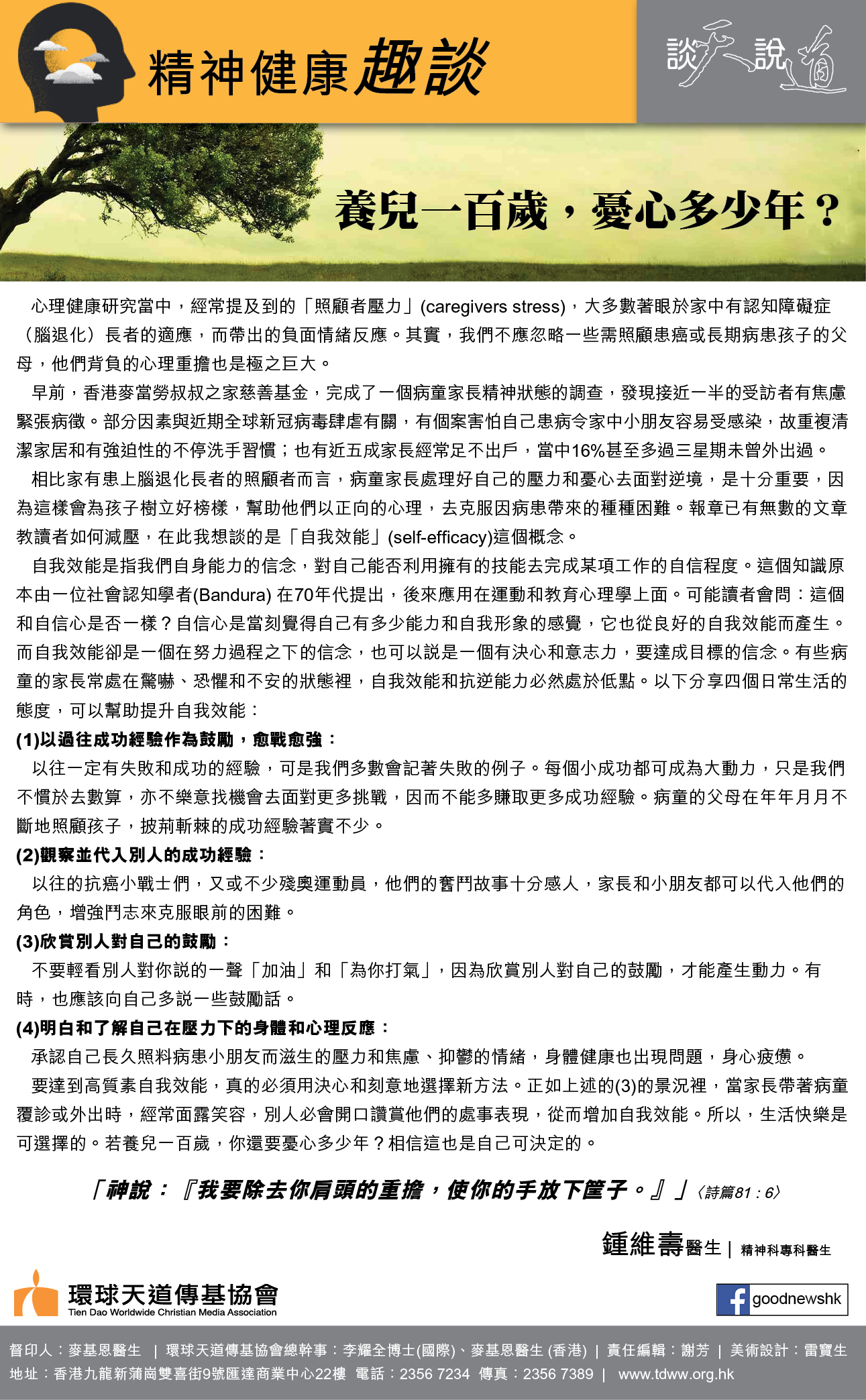 筆者在安老服務工作多年,接觸過不少照顧者,絕大部分對照顧工作有十足的承擔。困難就在於是否找到方法舒緩照顧事務帶來的壓力,以致他們可以與漫長的照顧工作共舞?