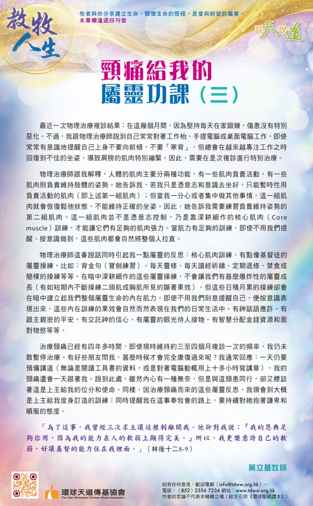 (可兒開始轉向靈性層面去尋求她的出路。她透過自己與神的關係及認識去明白自己所受的「苦難」的意義 )