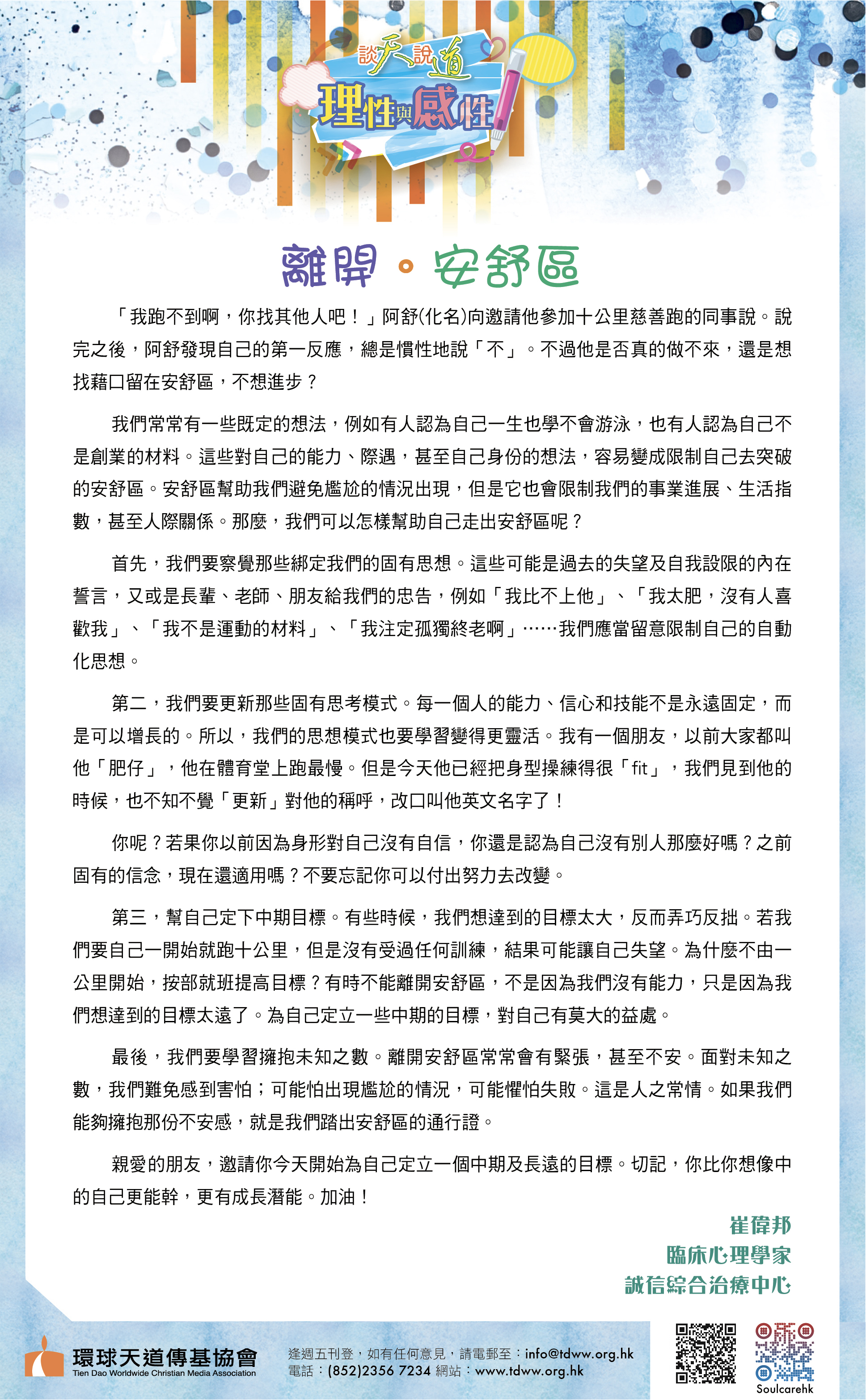 文:崔偉邦先生│誠信綜合治療中心(臨床心理學家)