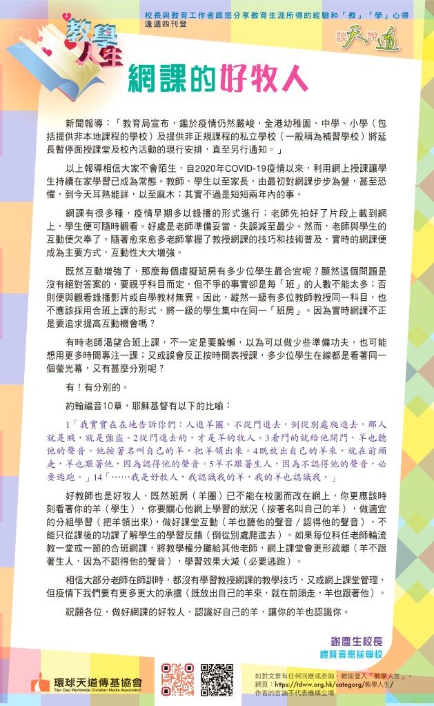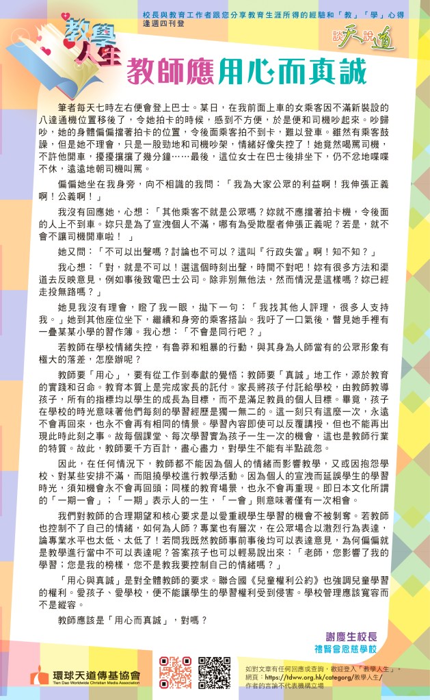 關心自己的工作,為學生著想的真正教育工作者,絕不易為。共勉之!